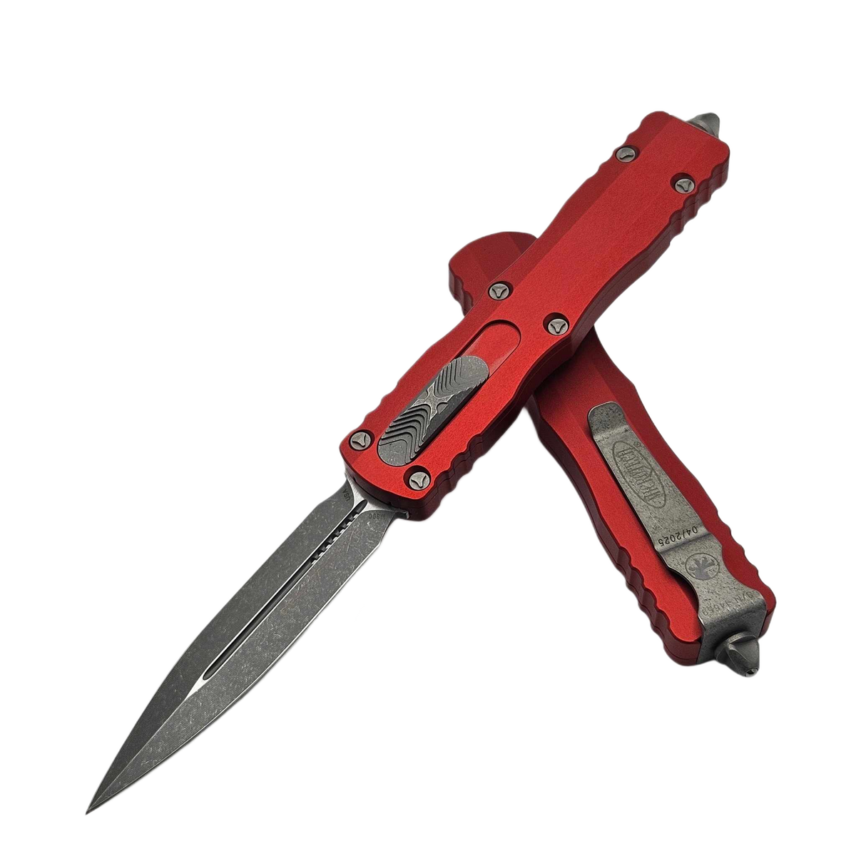 Microtech Dirac Delta D/E OTF Knife Red Aluminum, Apocalyptic by Tony Marfione (227-10APRD)