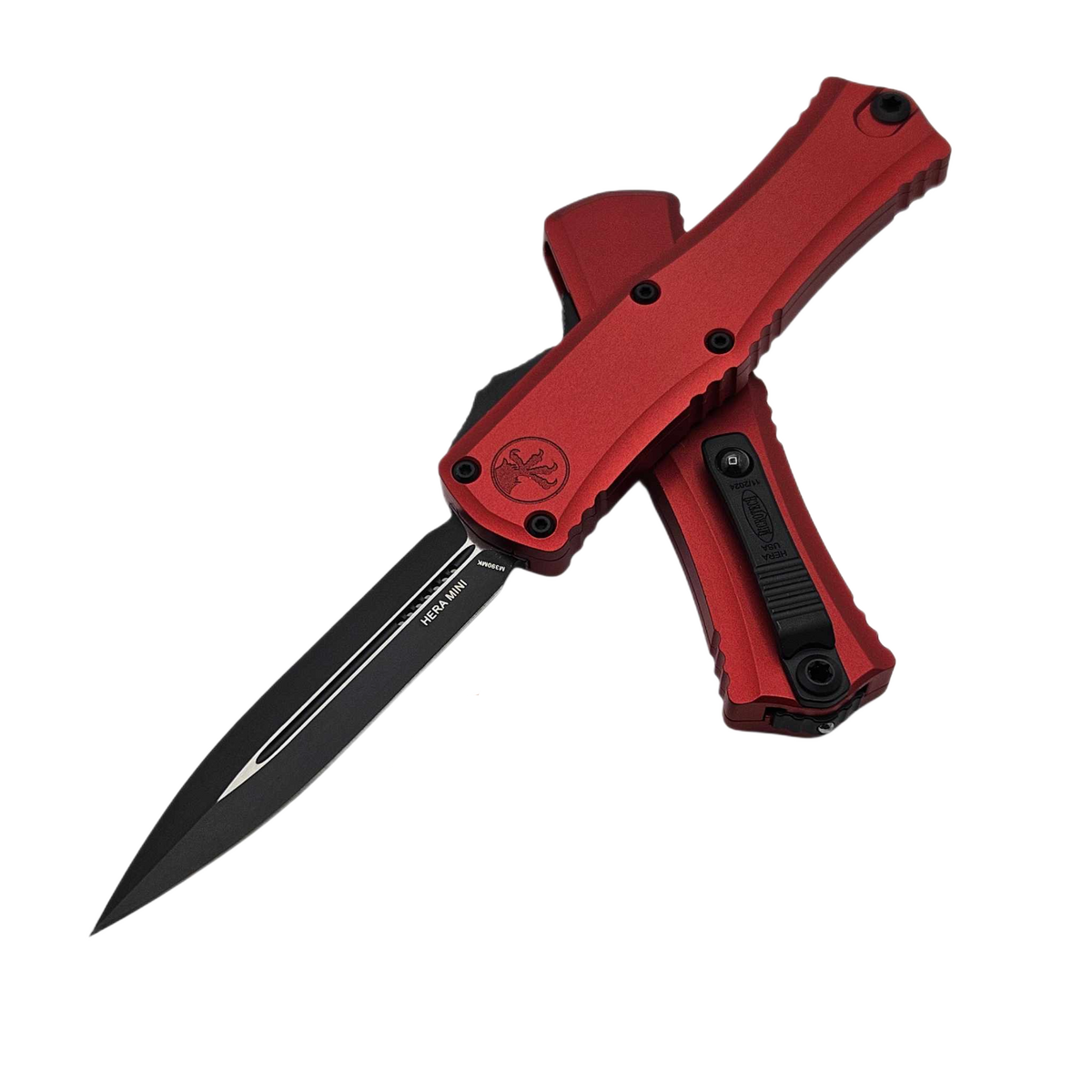 - Hera 2 Mini D/E Red Aluminium, Black compact version of one of the best OTF knives, inspired by Troodon. Lightweight and easy to carry, while retaining the power and performance of larger designs. Project by A. Marfione owner of Microtech Knives.