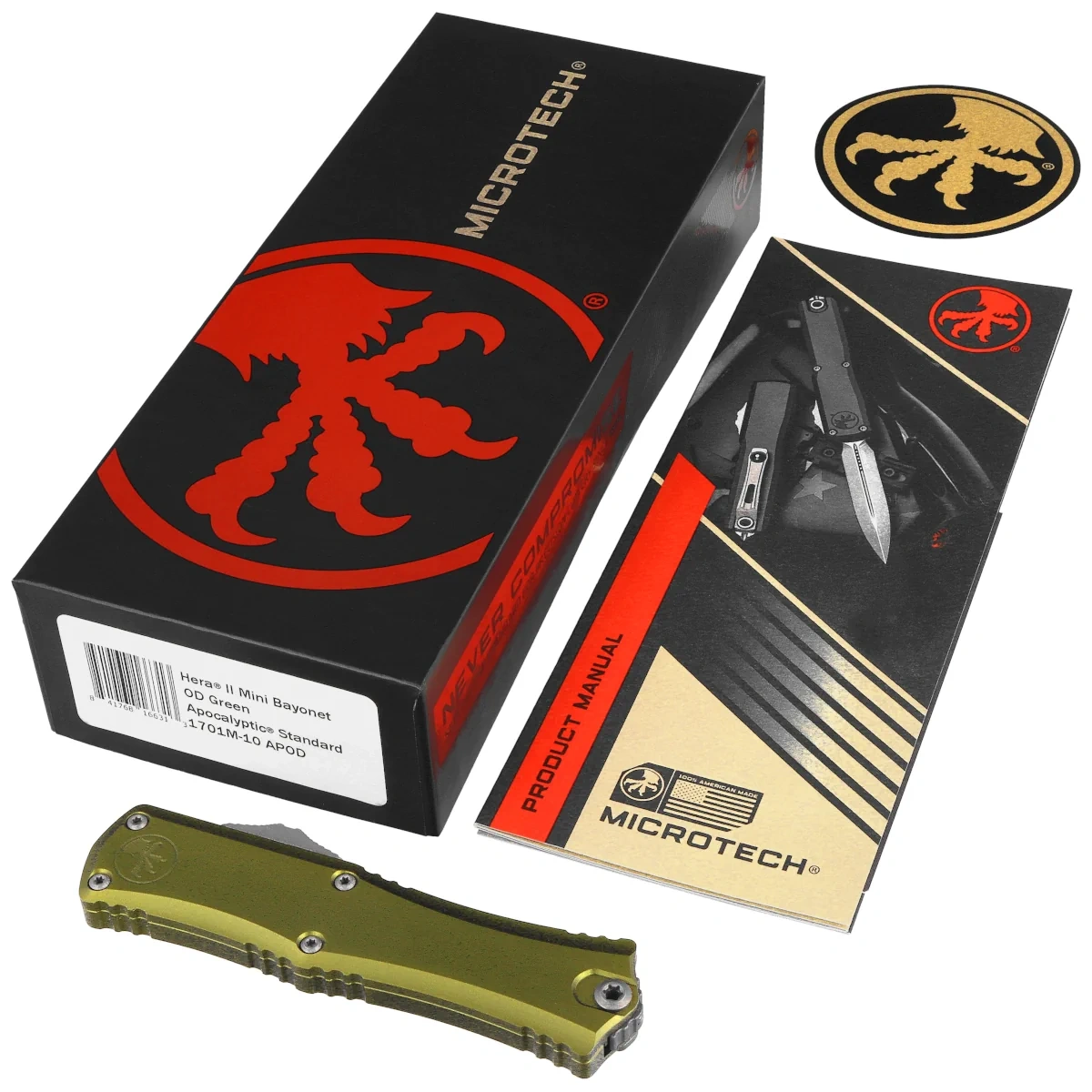 Microtech Hera II Mini Bayonet OTF Knife OD Green Aluminium, Apocalyptic M390MK by Tony and Sean Marfione (1701M-10APOD)