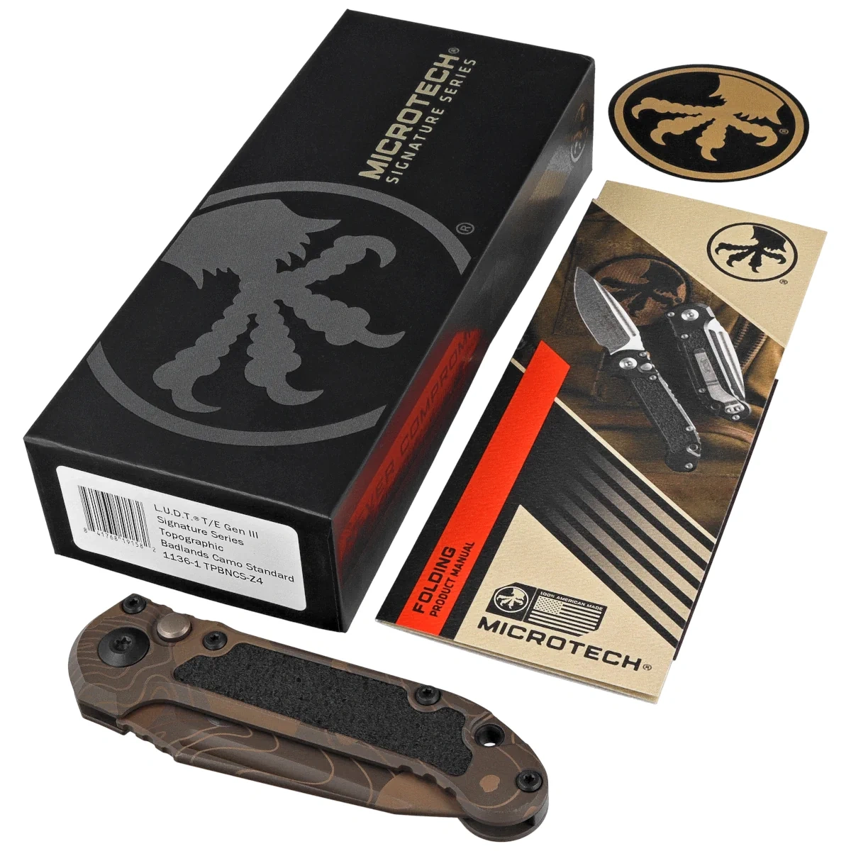 Microtech LUDT Gen III T/E Signature Automatic Knife Badlands Camo Aluminum, Badlands Camo M390MK by Tony Marfione (1136-1TPBNCS-Z4)