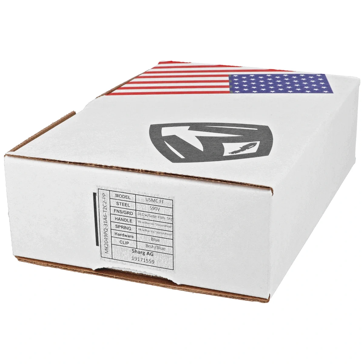 Product name: USMC Fighter Flipper Black/Blue-Violet “Diamond Head” Titanium, Blue HW/Clip, Black DLC/Satin