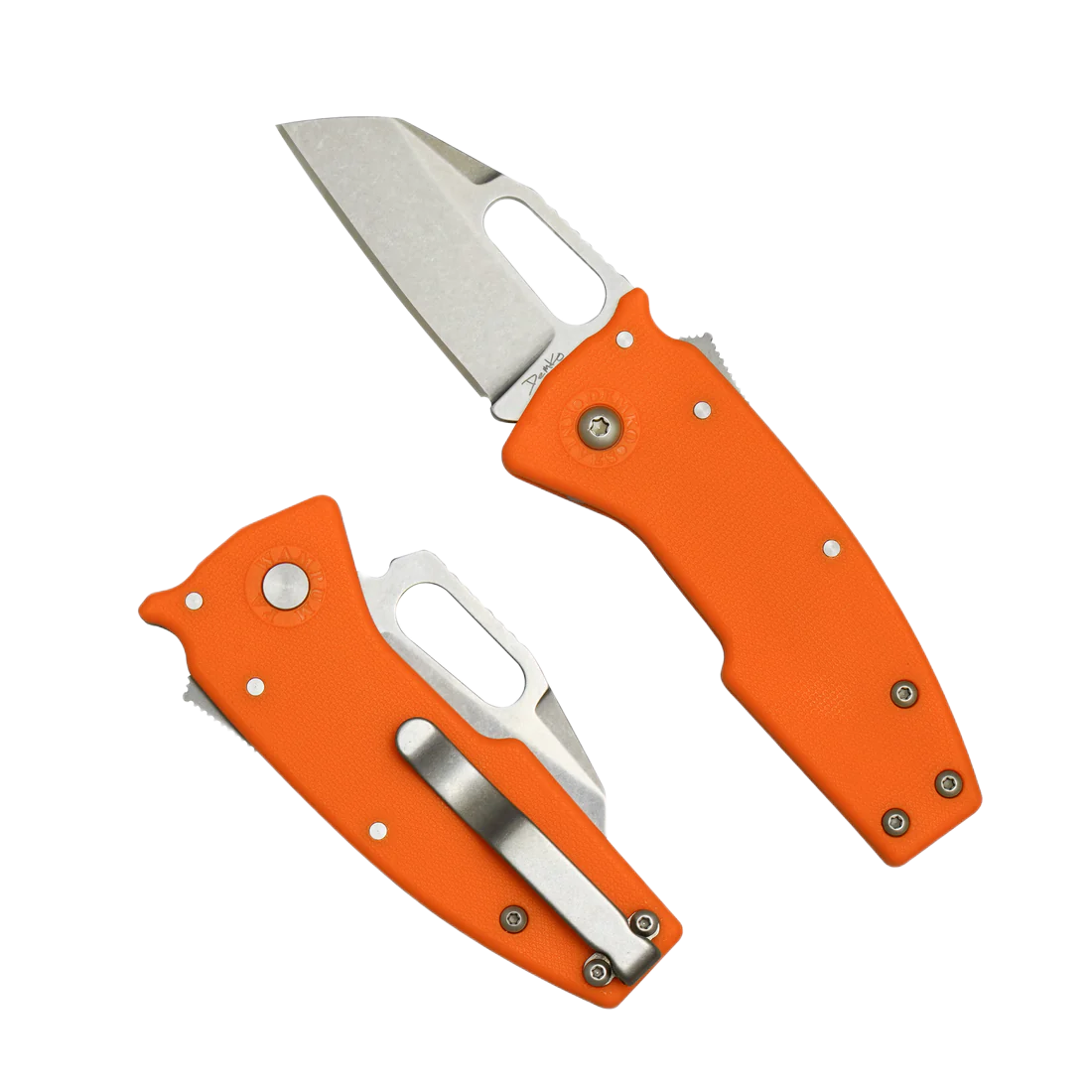 • Nano-Shark SF Orange GRN, Stonewashed the smallest folder in the Shark family designed for heavy-duty work. Designed by Cold Steel's long-time designer Andrew Demko. Its Shark-Lock™ is considered the strongest in the world!
