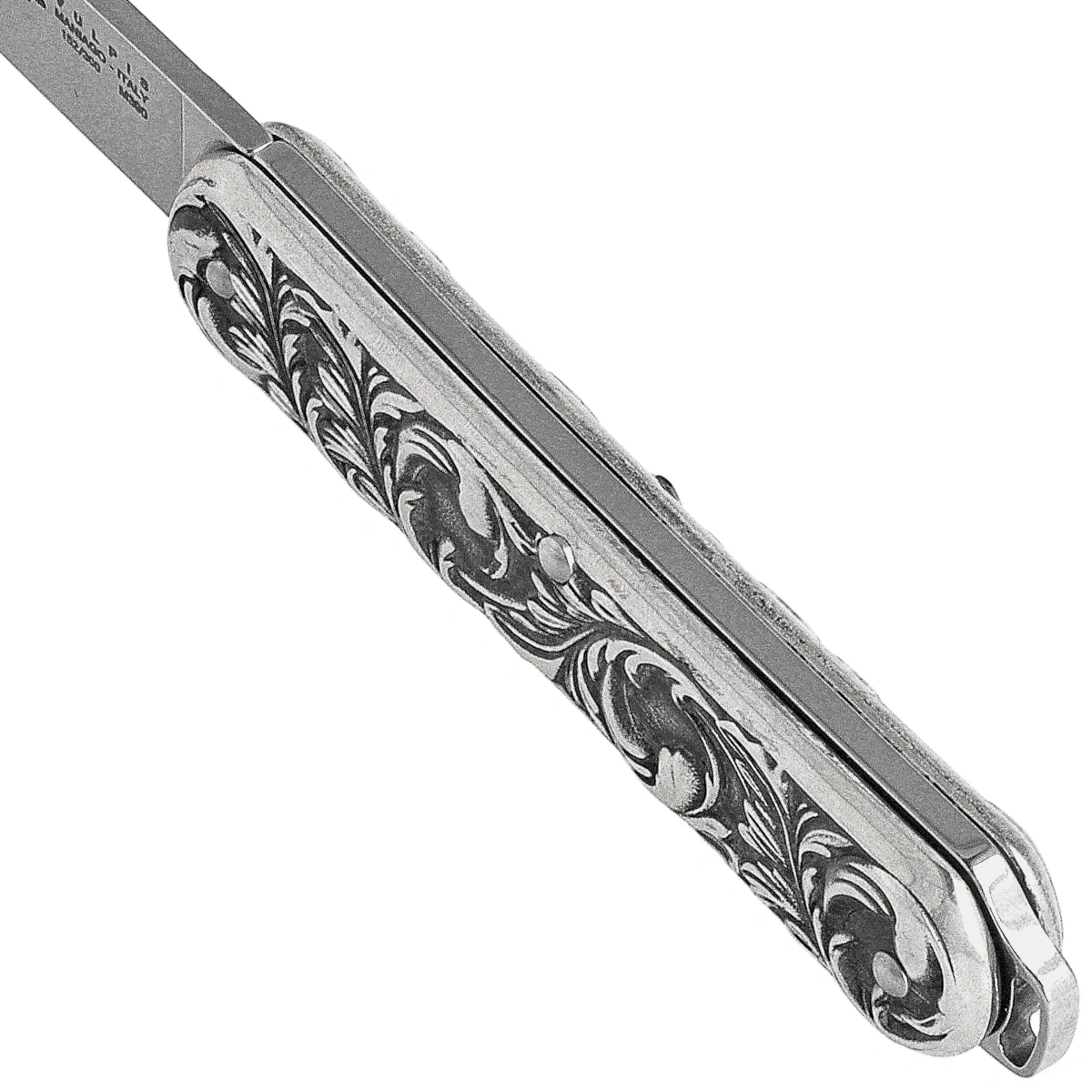 Are you tired of Swiss design? Do you desire something new, fresh, yet elegant? If so, then the Vulpis LE No 152/300 Silver 925, Polished, limited to 300 pieces edition of the 2023 European Product Design Award winner is just for you! This knife, part of the new Fox Knives Vulpis series, is a true masterpiece of Italian craftsmanship. Fox Vulpis is not just a knife, it is a multifunctional tool that is sure to satisfy your needs. Made of good steel, it is small, versatile and extremely durable. But that's not all! Fox Vulpis is available in several variants, depending on the choice of tools, materials used and colors of the grips. Its blade is made of Böhler M390 stainless steel , which is extremely hard and corrosion-resistant. Thanks to this, the Fox Vulpis is not only elegant, but also extremely practical. The Handle of this limited edition is made of intricately engraved sterling silver! Are you ready for a change? Are you ready for Fox Vulpis LE 152/300 Sterlin Silver 925, Polished If yes, then don't delay! Try Italian elegance and experience the difference. Fox Vulpis is waiting for you!