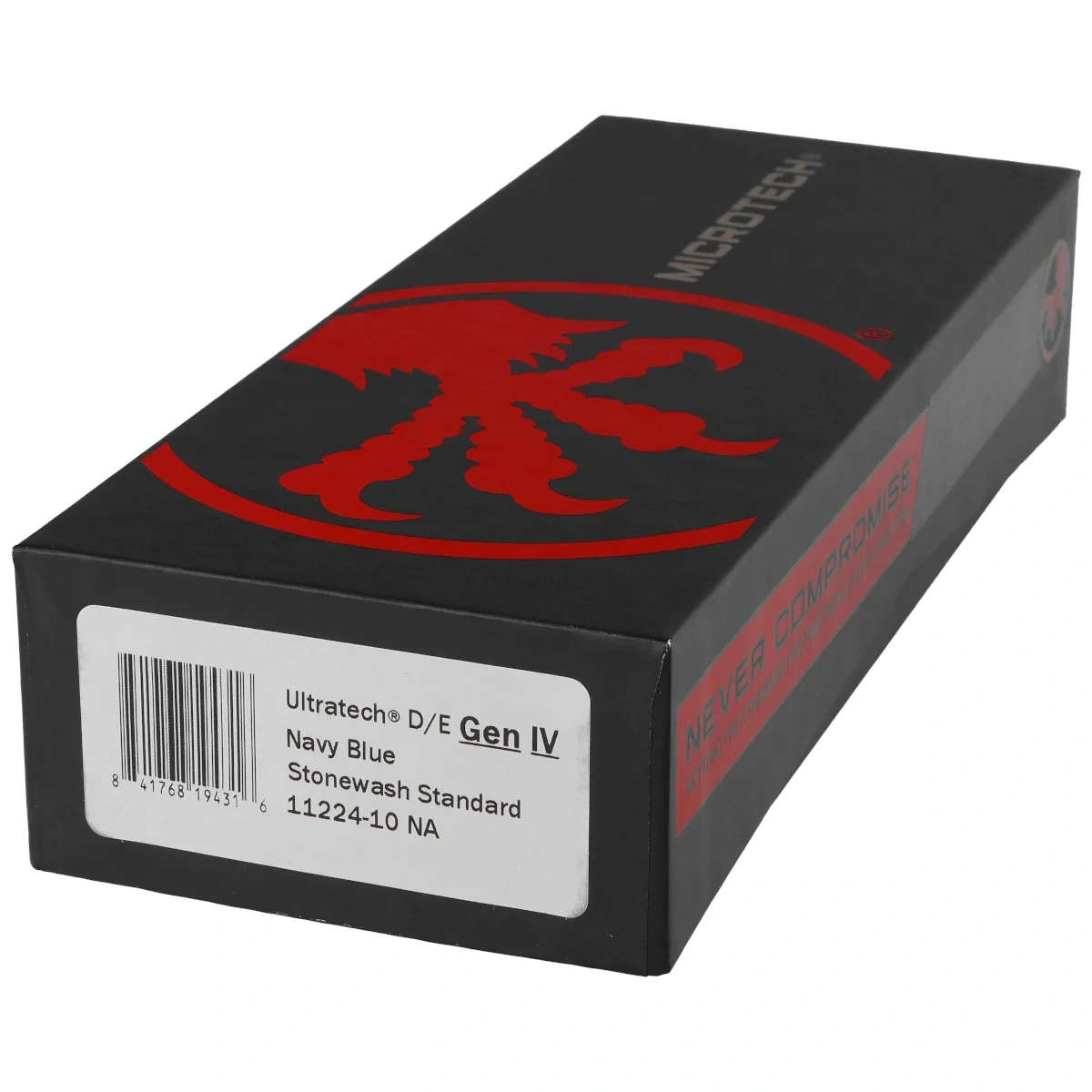 • Ultratech Gen IV D/E Navy Blue Aluminum, Stonewashed is a full-size OTF automatic knife from Ultratech. Operating in D/A mode, Blade made of Böhler M390MK steel, precision machined aluminum Handle. Designed by Tony Marfione owner of Microtech