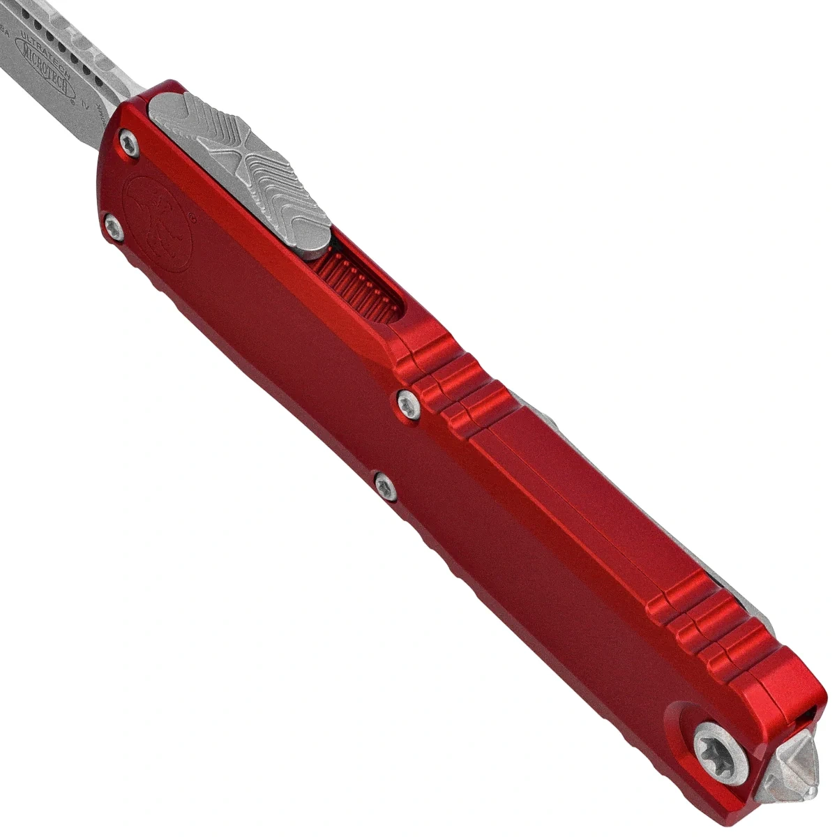 Ultratech Gen IV S/E Merlot Aluminum, Apocalyptic is a full-size OTF (Out The Front) automatic knife from Ultratech. The fourth generation is distinguished by a number of improvements such as; Crud Kutter™, Dual-Fuel Drive Train™. The Handle was also redesigned, equipping it with solutions known from other models. Working in D/A (Double Action) mode, it allows the blade to be instantly extended and retracted with a single thumb movement. The design by Tony Marfione, owner of Microtech Knives, combines modern design with the highest quality workmanship.