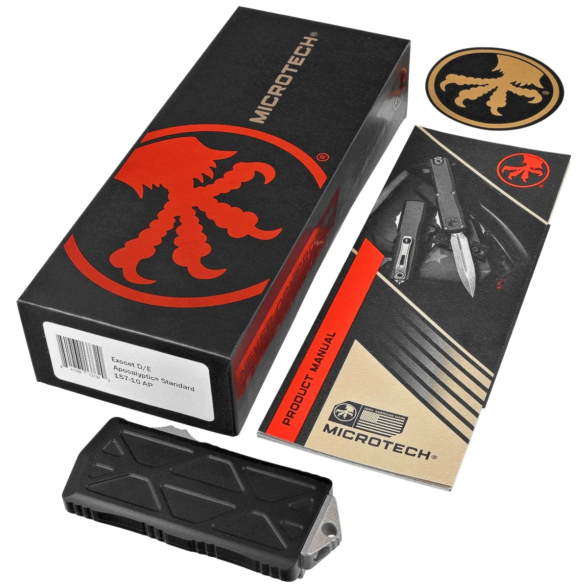 Microtech Exocet D/E OTF Knife Black Aluminum, Apocalyptic M390MK by Tony Marfione (157-10AP)