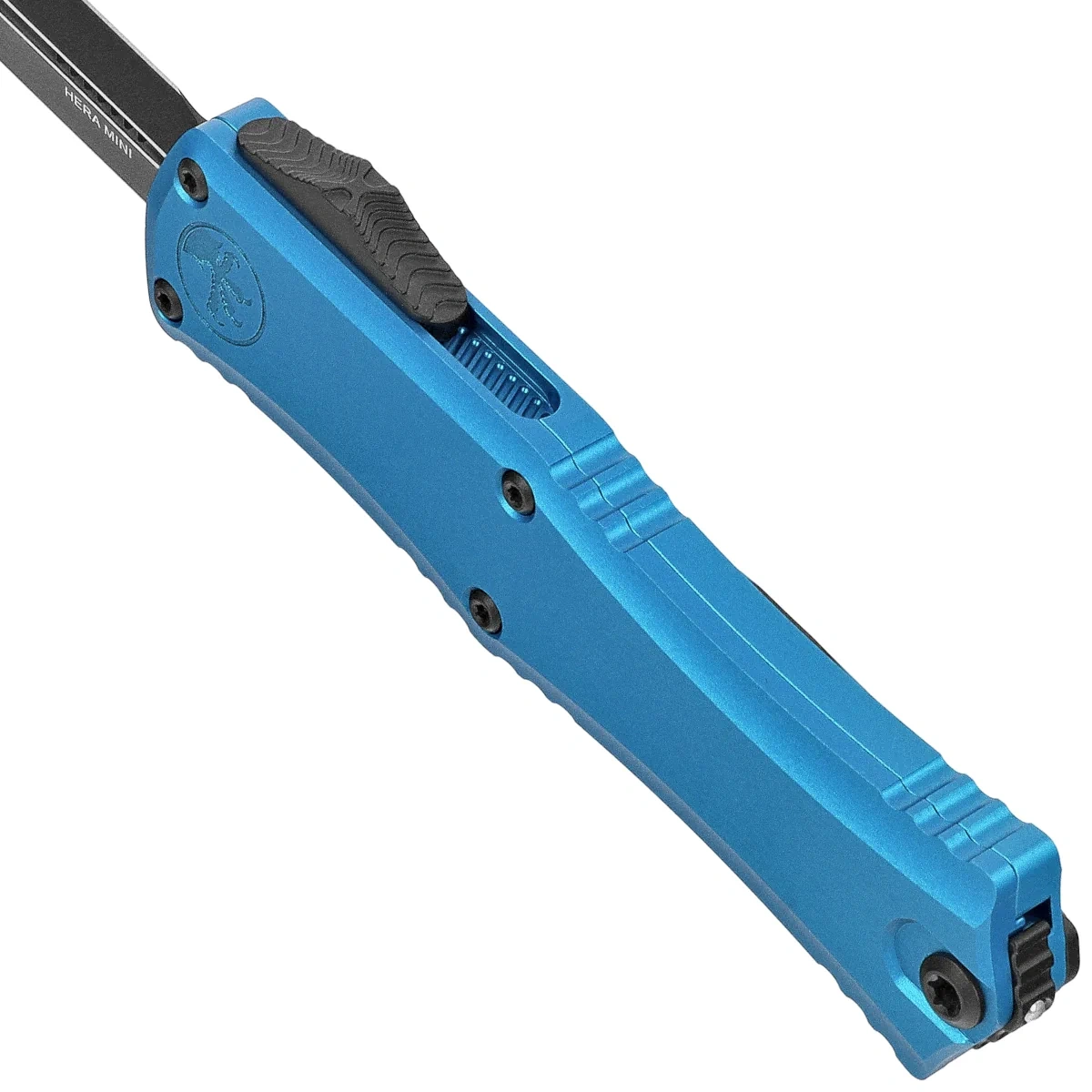 • Hera 2 Mini D/E Blue Aluminum, Black compact version of one of the best OTF knives, inspired by Troodon. Lightweight and easy to carry, while retaining the power and performance of larger designs. Project by A. Marfione owner of Microtech Knives.