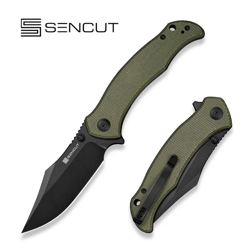 The Tauron Olive Canvas Micarta, Black represents one of the most pragmatic offerings in the Sencut brand's portfolio, aimed at users looking for a balanced EDC knife for regular, practical tasks. The design of this folder is based on proven utility solutions aimed at ensuring stability, predictability of operation and comfort in everyday use. The whole design has been kept in a subdued, technical aesthetic, thanks to which Tauron does not impose itself on form, but consistently performs the function of a working tool. Blade made of D2 tool steel was selected for intensive use, offering good sharpness retention and wear resistance for repetitive use tasks. The clip point profile provides a precisely outlined tip, facilitating control for jobs requiring precise blade guidance. The flat grind used creates a clear, flat geometry that promotes efficient cutting while maintaining edge stability. The black coating reduces the visibility of traces of use and emphasizes the utilitarian nature of the knife, making it a tool suitable for everyday work rather than occasional use. The Canvas Micarta composite handle is designed for a secure, stable grip in a variety of conditions. Its ergonomic profile fits well in the hand, allowing controlled work for both lighter tasks and more forceful cuts. The material provides adequate grip and resistance to moisture and changing environmental conditions, making the Tauron a practical knife for everyday carry. The Sencut Tauron is an option for users looking for a reliable EDC knife that will perform well in routine daily tasks with durability, control and predictable performance.