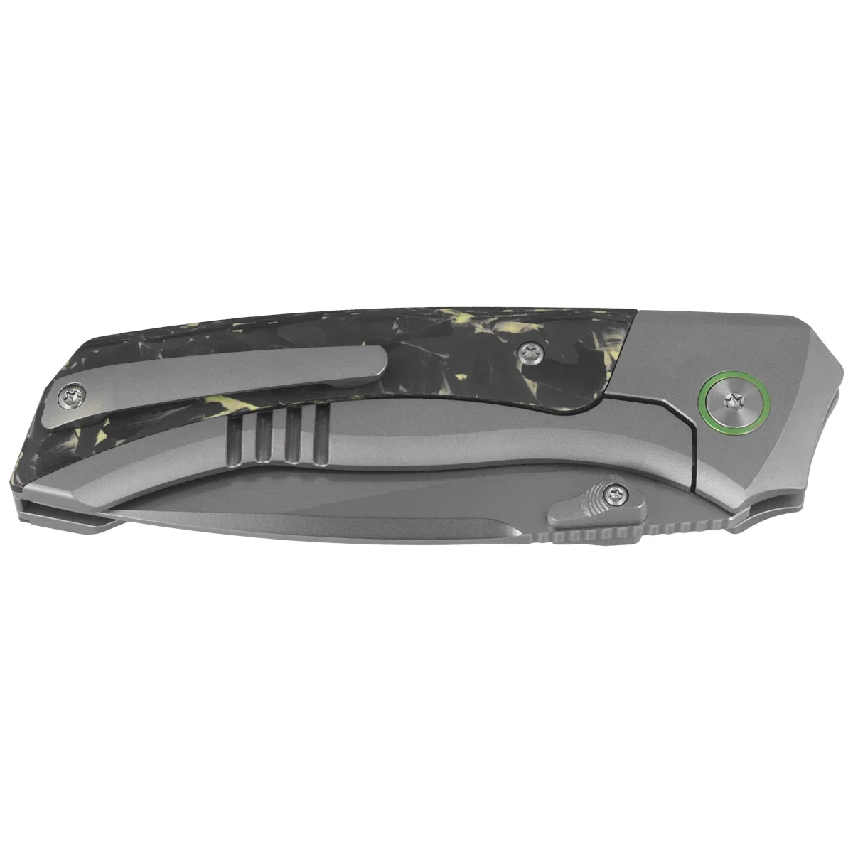 - RT-Steed Gray Titanium/Black-Green Carbon Fiber, Pearlescent is a modern premium EDC folding knife that combines refined mechanics, advanced materials and a sleek, technical form designed with conscious use in mind.