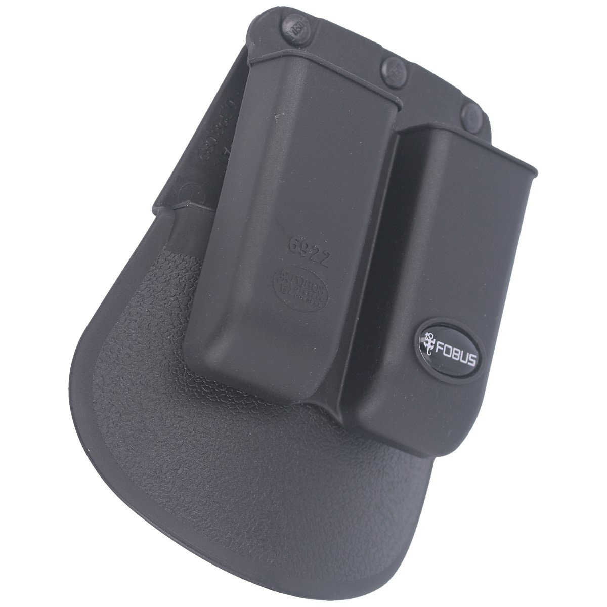 - 6922 (Paddle) ładownica podwójna otwarta Fobus na metalowe jednorzędowe magazynki pistoletowe kal. .22,.380,.32, 9x18. Na pas o szerokości 45mm. Do pistoletów Walther, Beretta, Bersa, Colt, CZ, Hi-Point, ISSC, Llama, Makarov, Ruger, Sig, Star, S&W...