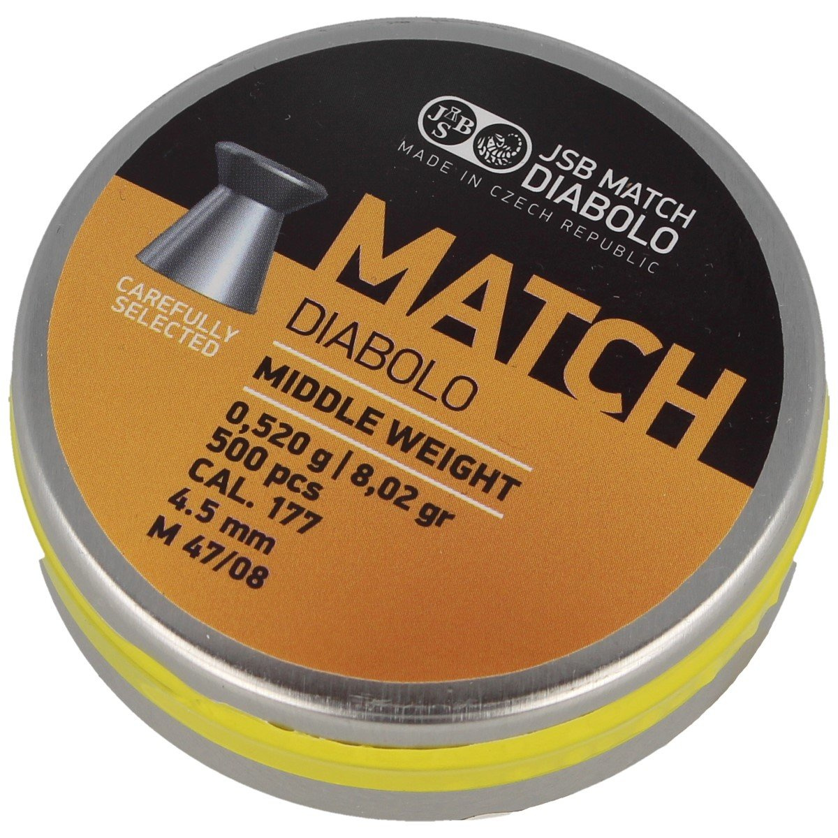 Match Middle Weight - to najpopularniejsza linia śrutów z płaską głowicą w ofercie JSB. Dzięki starannie dobranej wadze doskonale sprawdza się w większości wiatrówek - zarówno karabinach, jak i pistoletach. Ceniony przez najlepszych sportowców za wysoką celność. Pod względem masy zajmuje środkową pozycję w serii Match.