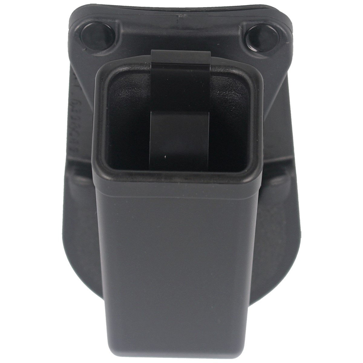 Polimerowa ładownica typu otwartego na magazynek dwurzędowy kal. 9mm/.40/.45 z mocowaniem do pasa typu UBC-03 w kolorze black czeskiej firmy ESP. Wewnętrzna sprężyna utrzymuje magazynek, umożliwia szybkie jego wyciągnięcie. Pasuje m.in. Glock, Walther P99, H&K 9mm/.40, Beretta 92/96/M9, Springfield XD, Ruger, Browning HP, SIG Sauer P226/P229, S&W MP9, CZ 75 Compact, Taurus 92/99.