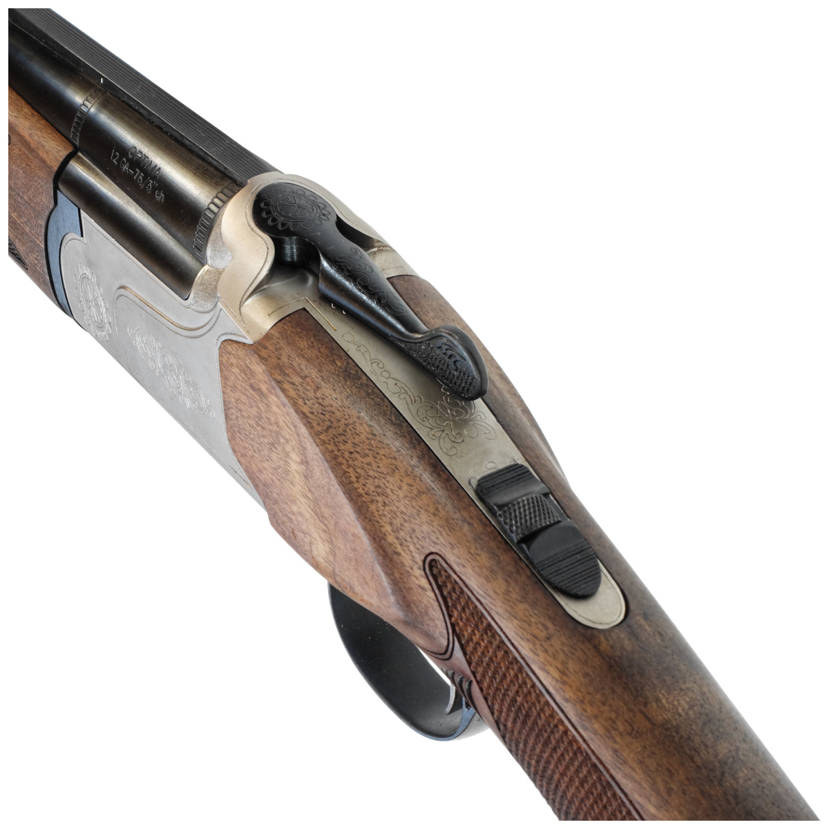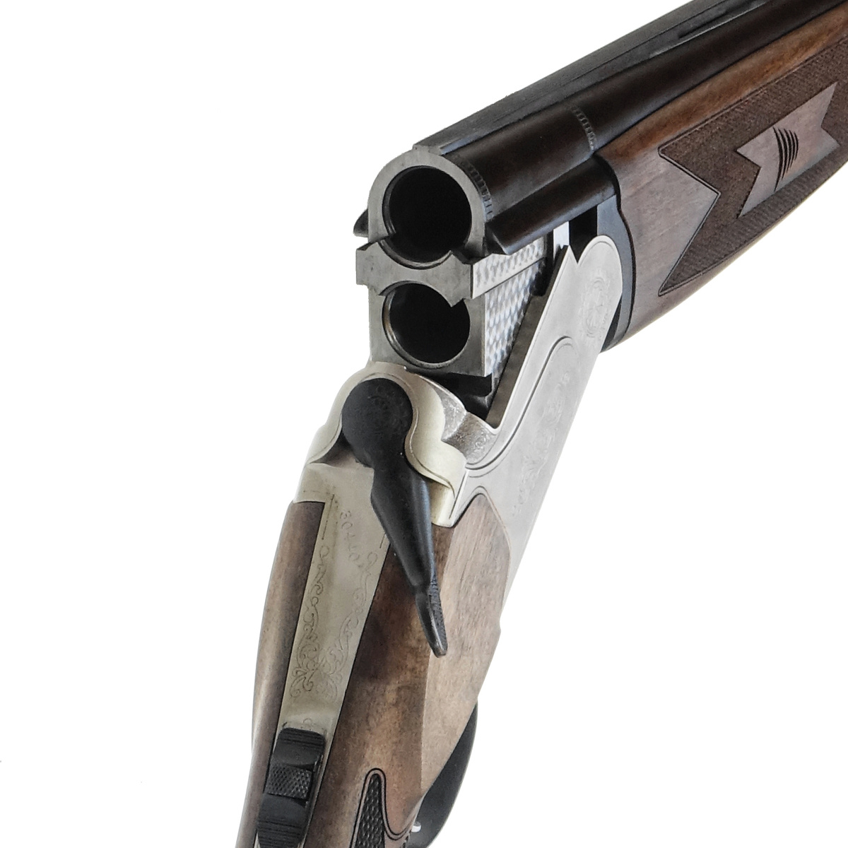 • Bok śrutowy z osadą z drewna orzechowego. Wentylowana lufa wykonana z wytrzymałej stali niklowo chromowo-wanadowej, wewątrz pokrytej chromowaną powłoką. Lufy testowane są na wytrzymałość 1200 kg/cm².