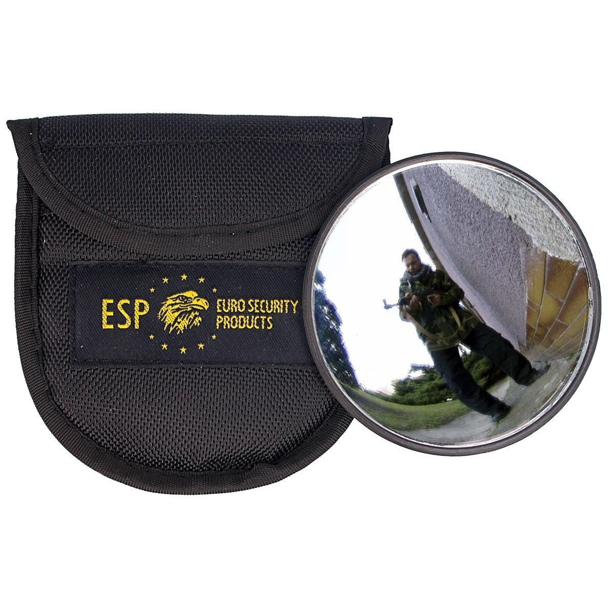 BMO-03 / BMH-03, panoramiczne taktyczne lusterko inspekcyjne czeskiej firmy ESP o średnicy 92 mm, z uniwersalnym klipsem oraz ochronnym etui w zestawie. Pasuje do pałek teleskopowych ze stalową końcówką.