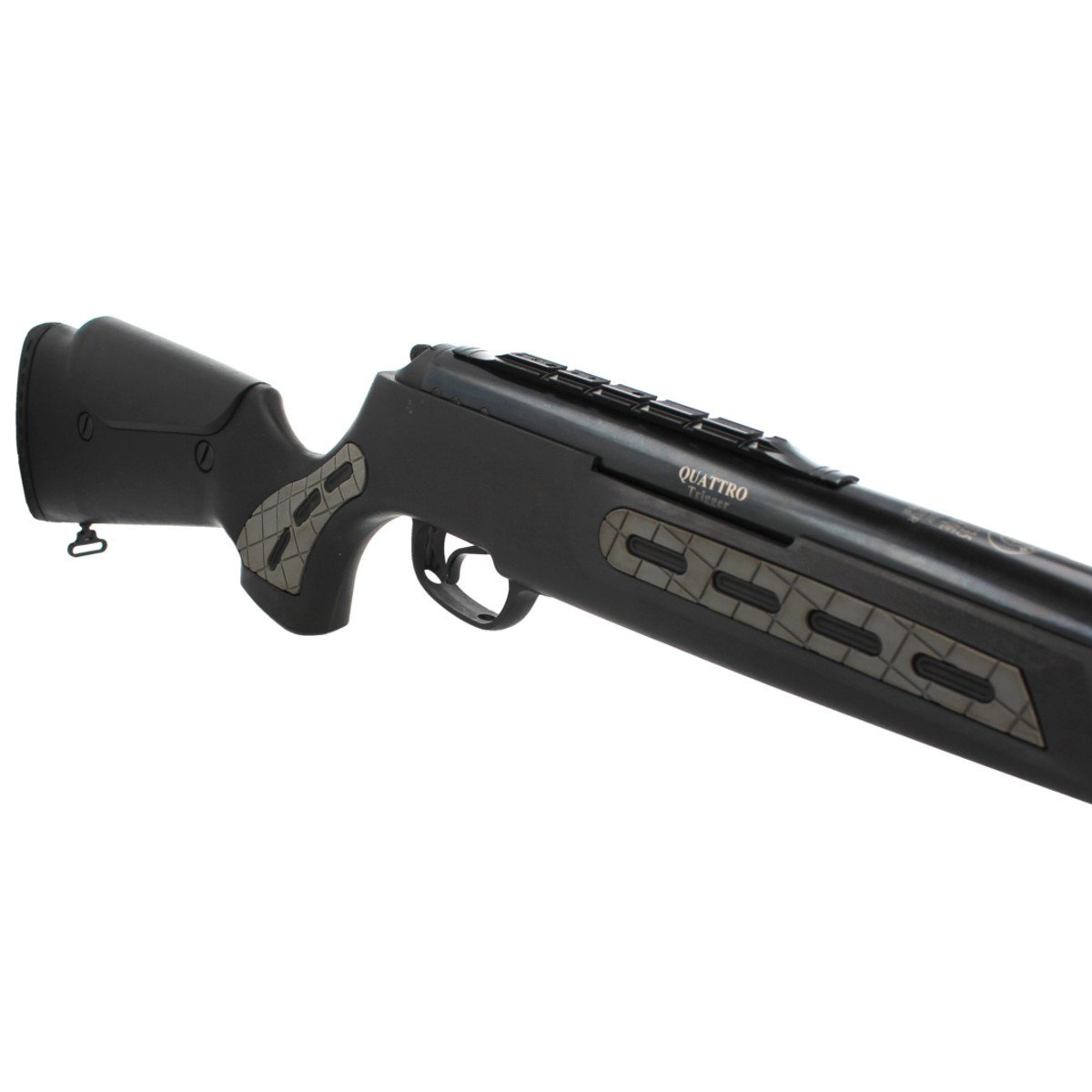 - Quattro Trigger legendarny 2-stopniowy w pełni regulowany mechanizm spustowy. Umożliwia regulację długości pierwszej drogi (jałowej) oraz drugiej drogi języka spustowego (Trigger Load) oraz regulację twardości (czułości / oporu) języka spustu (Trigger Pull). Proces dostosowania charakterystyki spustu zgodnie z własnymi preferencjami, jak i stylem strzelania w celu zapewnienia jak najlepszej celności, jest szybki i nieskomplikowany.