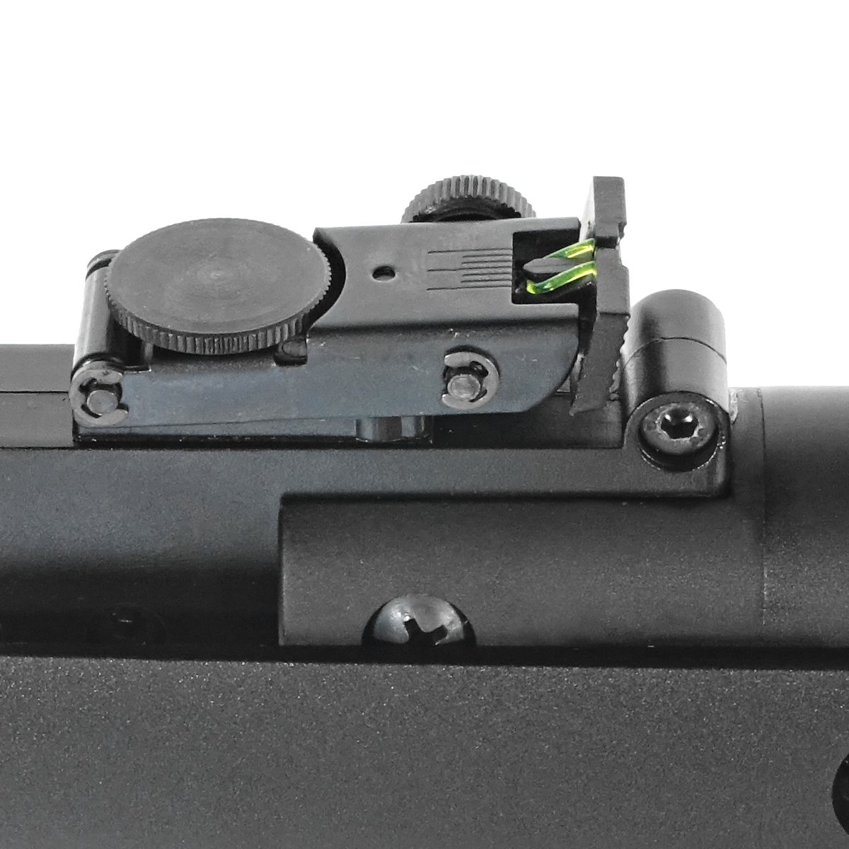 TruGlo - światłowodowe przyrządy celownicze z kontrastowymi kolorami włókien szklanych pozwalają na precyzyjne oddanie strzału również przy słabym oświetleniu. Stała muszka posiada ochronę zabezpieczającą przed uszkodzeniem. Metalowa szczerbinka regulowana jest w pionie i poziomie.