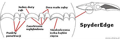 Combination Edge - (częściowo ząbkowane) często stosowane w nożach taktycznych, ratowniczych oraz survivalowych. Unikalne ostrze firmy Spyderco składa się naprzemiennie z jednego dużego oraz dwóch małych zębów tzw. two-step. Wzór ten zwiększa długość krawędzi cięcia nawet o 24% w stosunku do ostrza prostego. Ostrze Combination wyprowadzono szlifem wklęsłym (Hollow Grind). W 80% stanowi go ząbkowane ostrze Spyder do agresywnego cięcia twardych materiałów, tworzyw sztucznych oraz włóknistych m.in. lin, pasów oraz w 20% (1 cal) klasyczne ostrze gładkie Plain, służące do precyzyjnego cięcia np. rozcinania odzieży.