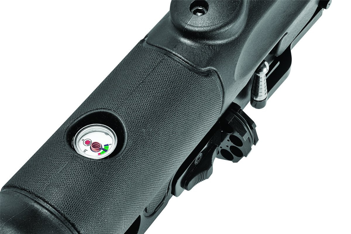 Wyposażenie dodatkowe - dwa metalowe obrotowe bączki do mocowania pasa do broni lub zawieszenia taktycznego. Quick-Fill końcówka do szybkiego napełniania kartusza powietrzem za pomocą pompki butli technicznej / nurkowej (300 bar).