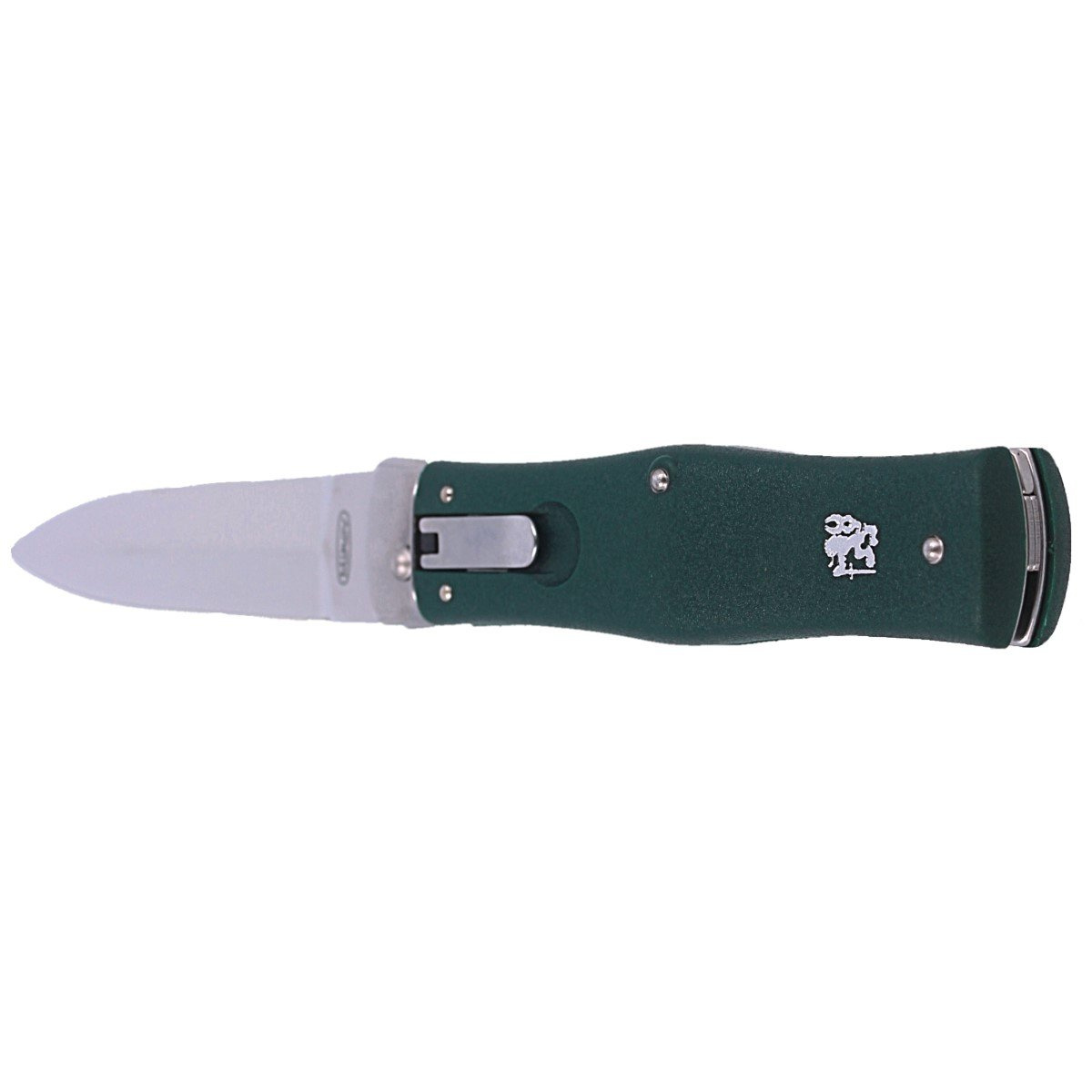 Predator ABS Green z klipsem, nóż automatyczny typu swichblade czeskiej firmy Mikov z Mikulasovic z klipsem i okładzinami z ABS w militarnym zielonym kolorze. Region ten od 1794 roku specjalizuje się w produkcji wyrobów nożowniczych, będąc nazywanym "czeskim Solingen".