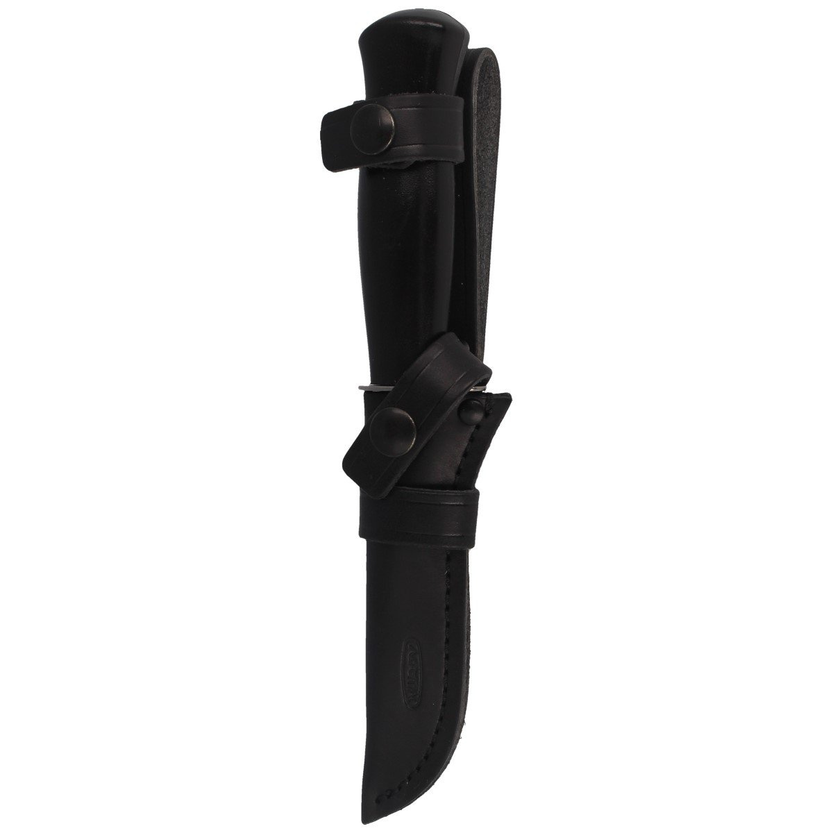 Etui - skórzane w kolorze czarnym, zapinane na dwa zatrzaski. Mocowanie do pasa lub oporządzenia umożliwia noszenie noża w pochwie w pozycji pionowej.