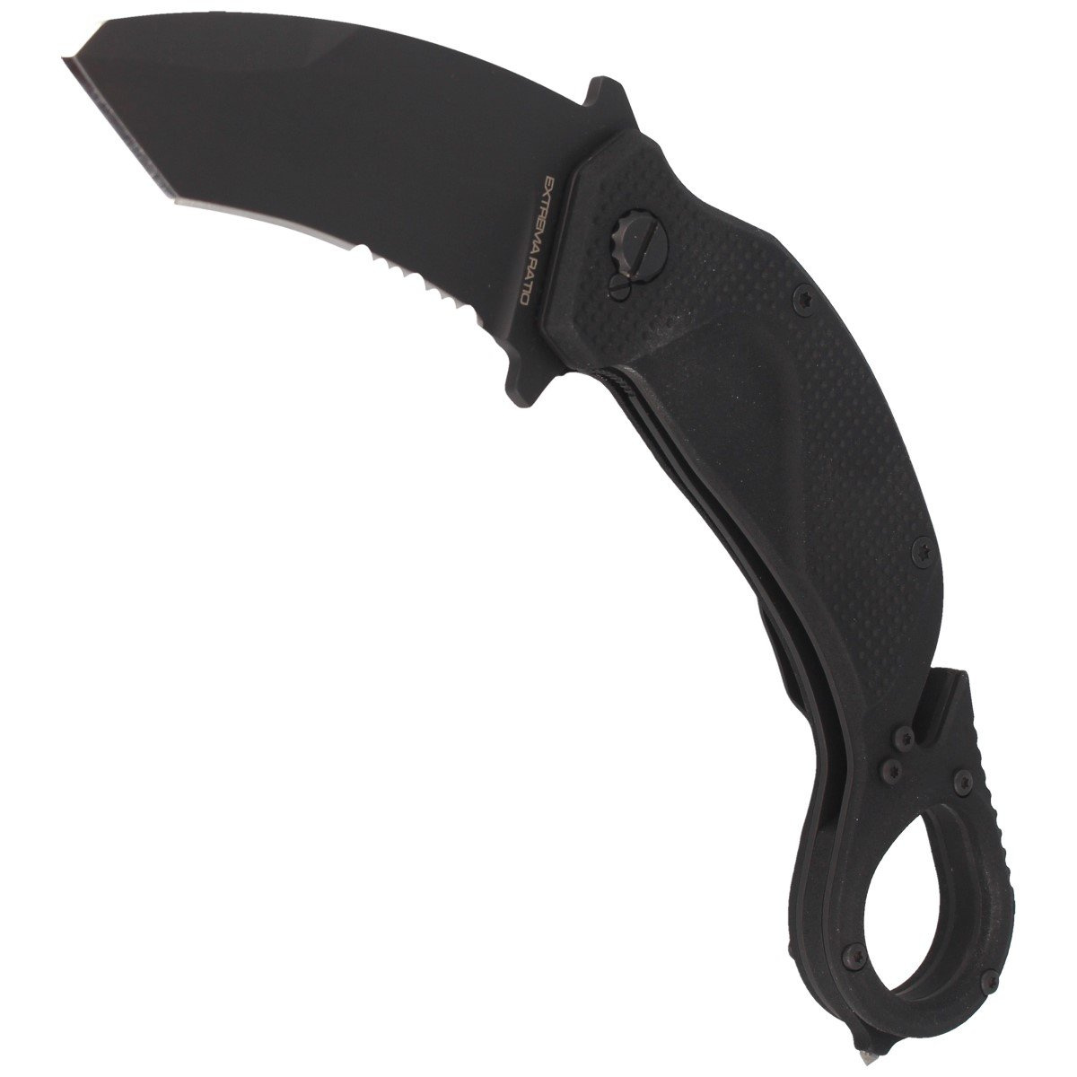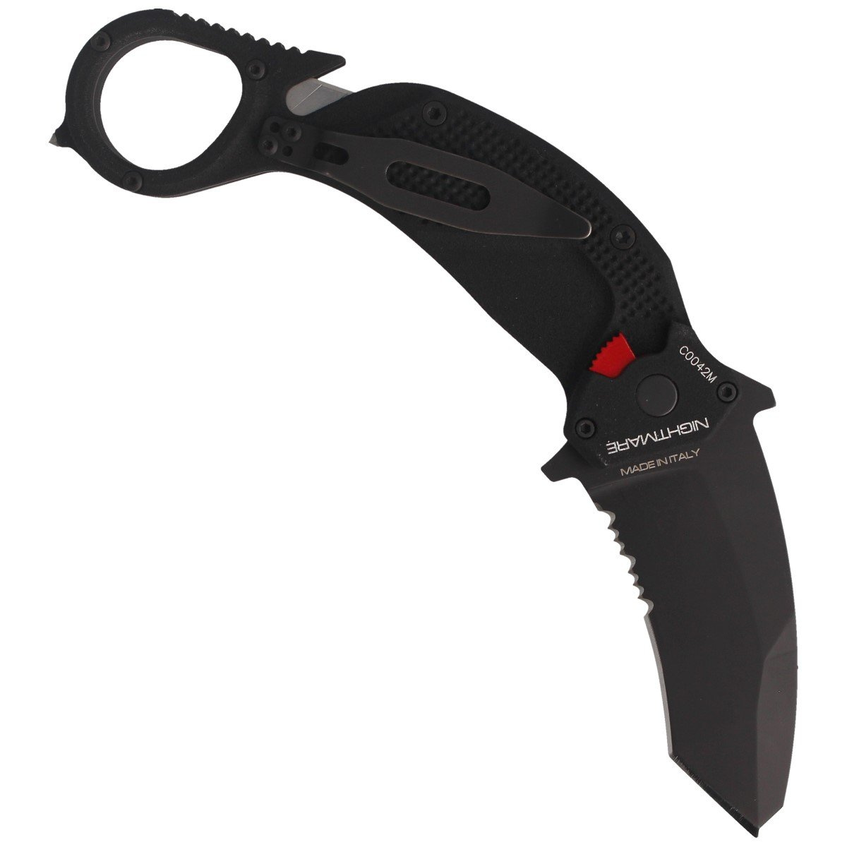 NightMare Black, wysoce zaawansowany karambit i nóż ratowniczy w jednym, projekt włoskiej firmy Extrema Ratio. Przyjęty na wyposażenie specjalnych jednostek interwencyjnych policji U.S.I.V.P. księstwa Monako. Doskonałe narzędzie jak i niezwykle efektywny pełnowymiarowy (full size) nóż przeznaczony do profesjonalnego użytku. Folder otwiera się i zamyka lekko i płynnie. Doświadczeni wytrawni użytkownicy karambitów nie będą rozczarowani.