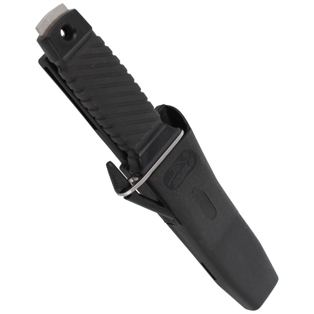 SQUALO 15 M GG BLACK, masywny, wielofunkcyjny nóż dla nurka wyposażony w młotek, klucz, szeklownik włoskiej firmy MAC Coltellerie. Nieodzowny element wyposażenia podczas wypraw nurkowych, przydatny na lądzie.