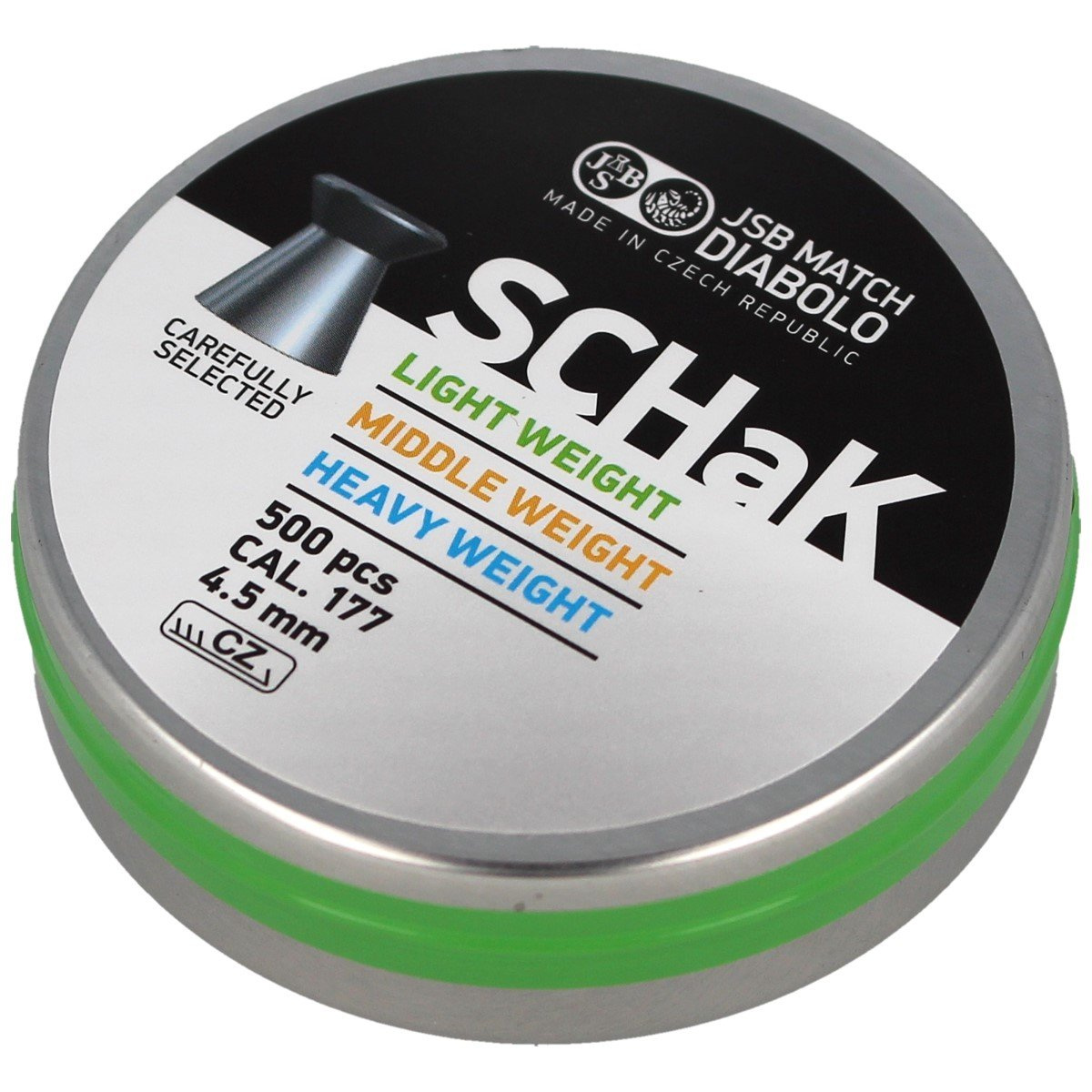 - SCHaK Light Weight 0.475g - lekki, pistoletowy śrut tarczowy JSB z płaskim czołem w kal. 4.50 mm, oferowany w doskonałej cenie! Płaska głowica zapewnia wyraźne, gładkie przestrzeliny. Gładki kielich, bez moletowania. Opakowanie 500 szt.