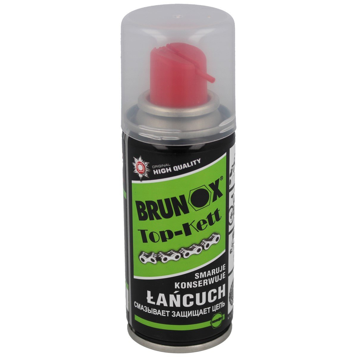TOP-KETT SPRAY 100 ml, specjalistyczny szwajcarski środek smarujący w aerozolu do łańcuchów z długotrwałą ochroną antykorozyjną w poręcznym 100ml opakowaniu. Preparat pozostawia cienką 5-10 mikrometrową niewysychającą powłokę ochronno-smarującą, do której nie przylega pył i kurz. Odporny na każdą pogodę, doskonale zabezpiecza przed wilgocią.