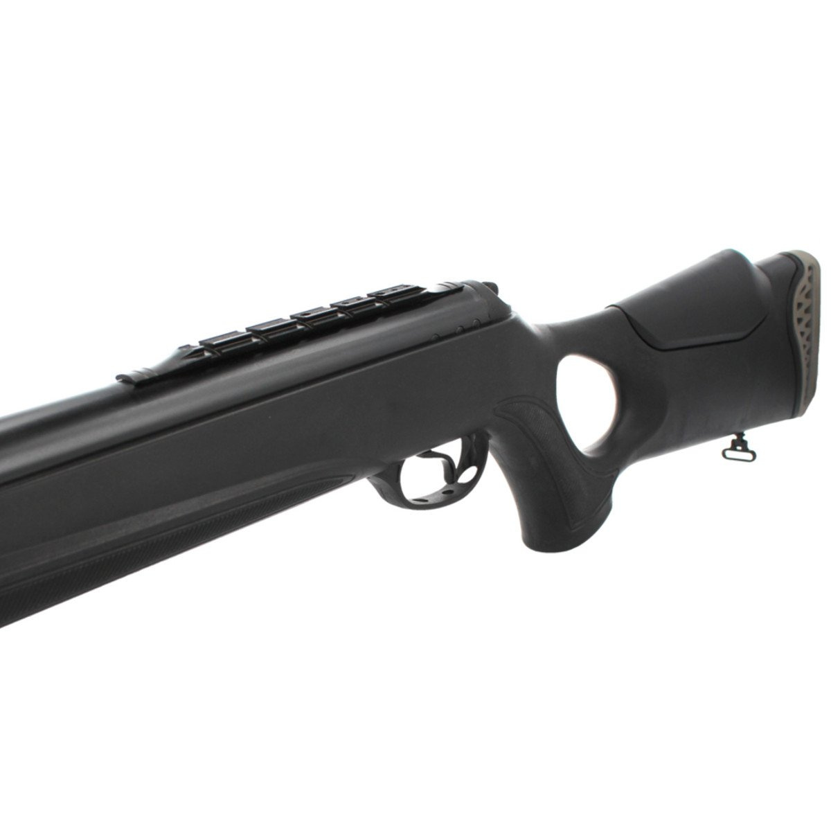 - Manualno / automatyczny bezpiecznik - umieszczony w tylnej części komory cylindra wiatrówki chroni przed oddaniem niekontrolowanego strzału. Takie umiejscowienie pozwala na intuicyjną obsługę bezpiecznika kciukiem. Przed oddaniem strzału należy wcisnąć bezpiecznik co spowoduje zwolnienie blokady spustu, (każdorazowe naciągnięcie sprężyny wiatrówki powoduje automatyczne jego zadziałanie).