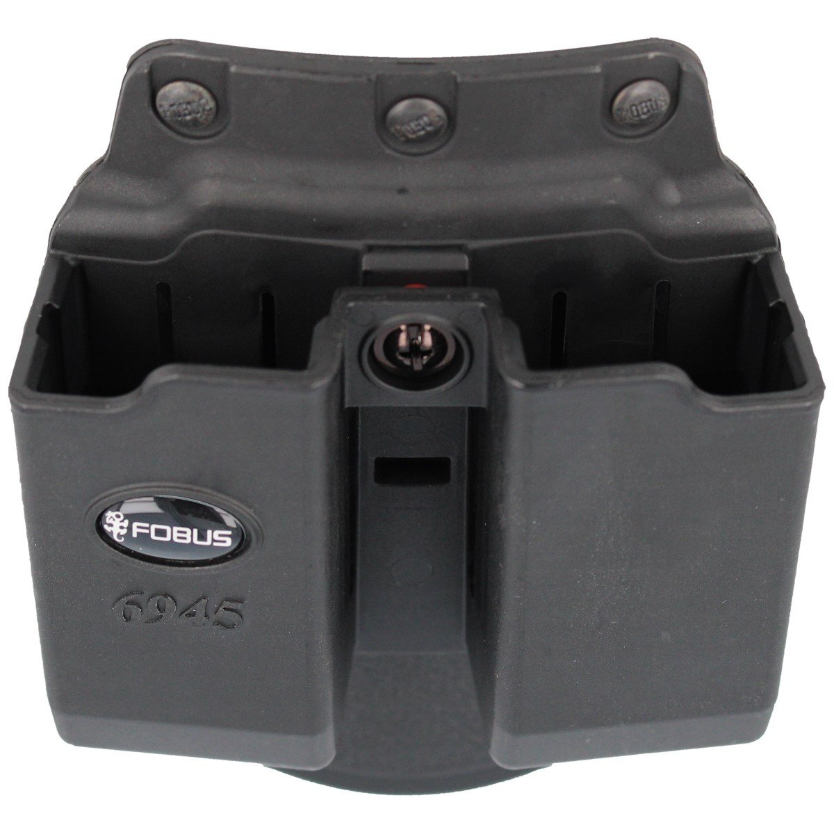 6945 (Paddle), ładownica typu otwartego firmy Fobus na dwa dwurzędowe magazynki pistoletowe w kalibrze .45 do pistoletu typu S&W, Springfield, H&K, Walther, FN, nie pasuje do pistoletu Glock. Uchwyt wykonano metodą wtryskową z odpornego na zarysowania, udar oraz ekstremalne temperatury tworzywa sztucznego o dużej gęstości.