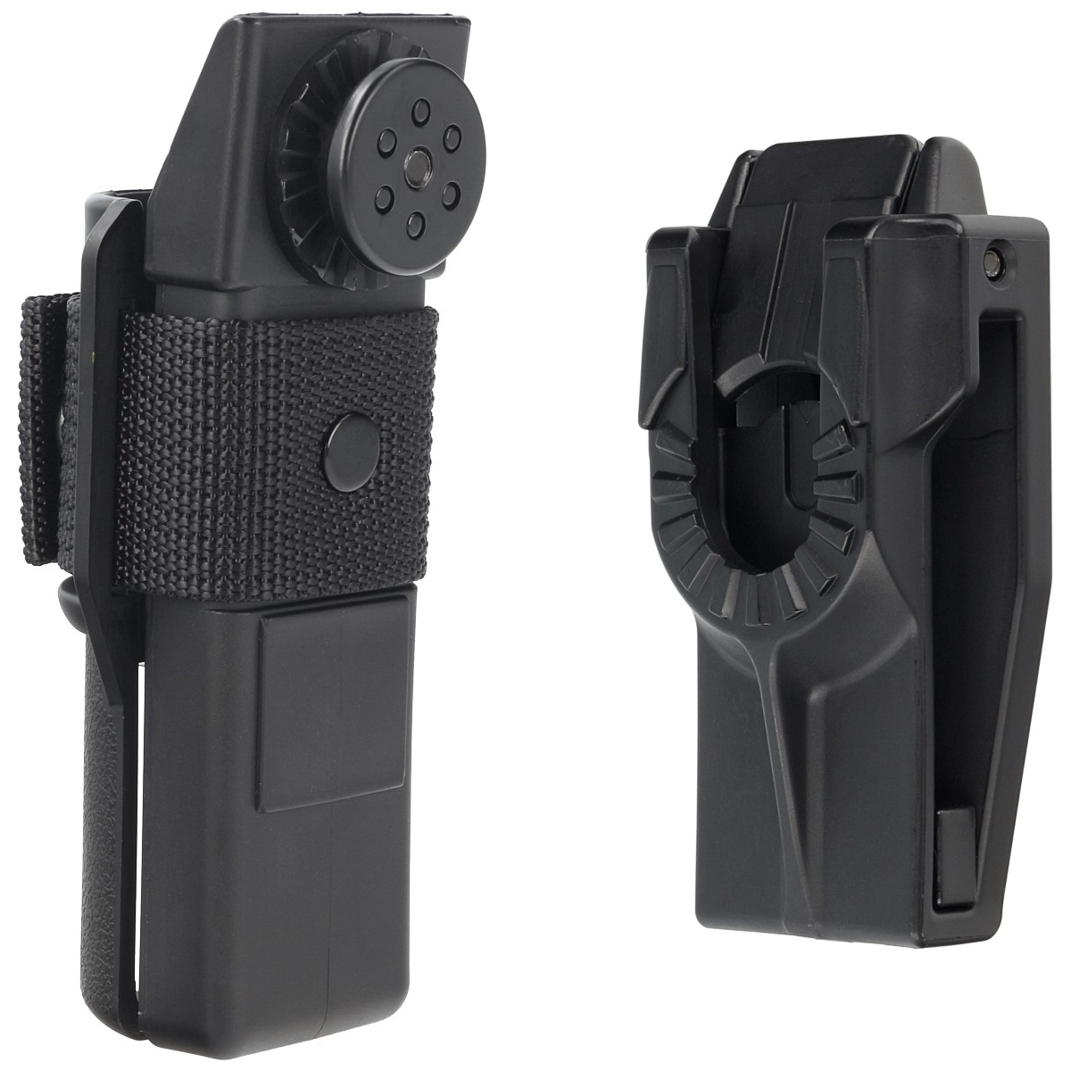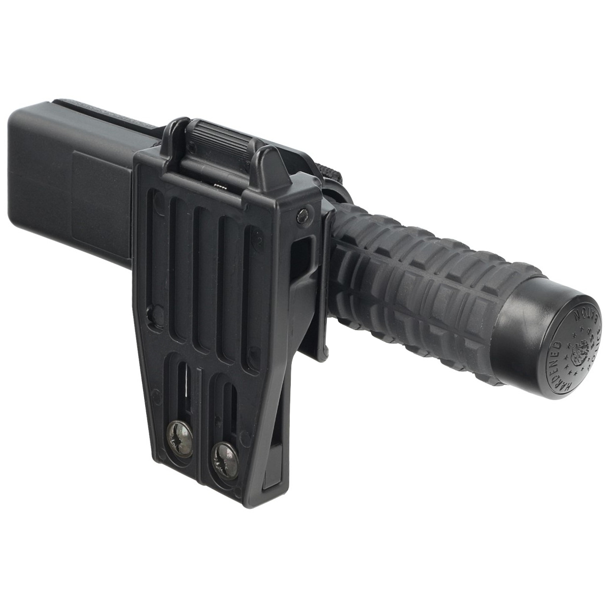 BH-54 – profesjonalny, obrotowy uchwyt na pałkę teleskopową. Wyposażony w wsuwane na pas mocowanie transportowe UBC-05 z systemem szybkiego wypięcia Quick Change System. Przeznaczone do batonów typu Friction Loc o długości 16", 18" oraz 21"(nie pasuje do batonów ESP Compact). Umożliwia przenoszenie pałki zarówno złożonej, jak i rozłożonej w pozycji pionowej, poziomej lub dowolnej.