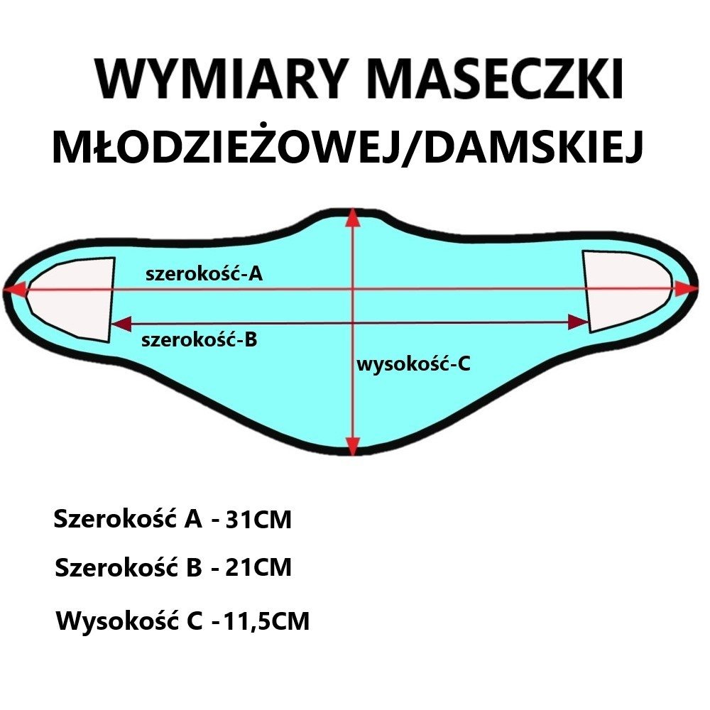 Maseczka ochronna, wielorazowa. Gwarantuje swobodę użytkowania, dopasowuje się do kształtu twarzy. Zapewnia swobodny przepływ powietrza, i nie powoduje problemów z oddychaniem. Jest to bardzo istotne w nadchodzącym sezonie letnim, przy wysokich temperaturach. Maseczka nie powoduje otarć, jej przewiewność sprawia, że potliwość i osadzanie się wilgoci od wewnętrznej strony, jest zminimalizowane. Jednocześnie, stanowi barierę ochronną przed czynnikami zewnętrznymi, chroni zarówno nas jak i innych przed zarazkami, które potencjalnie możemy roznosić. Maseczka dedykowana osobom o mniejszym walu twarzy, kobietom i nastolatkom. Wykonywana jest z jednego kawałka tkaniny, metodą cięcia laserowego. Z grafiką na całej powierzchni.
