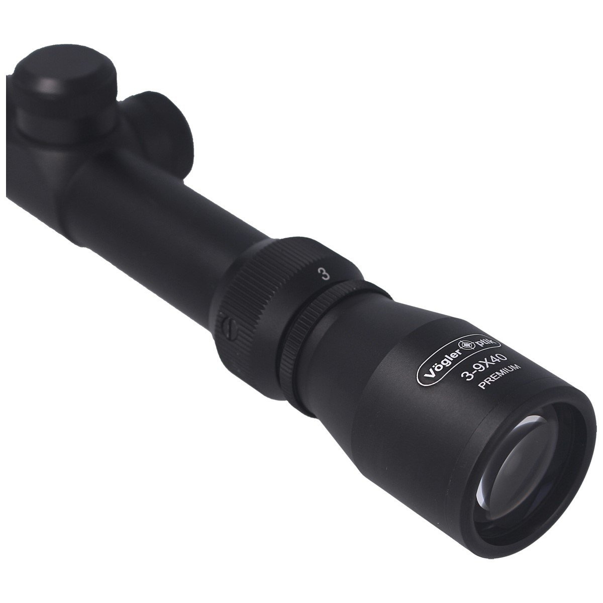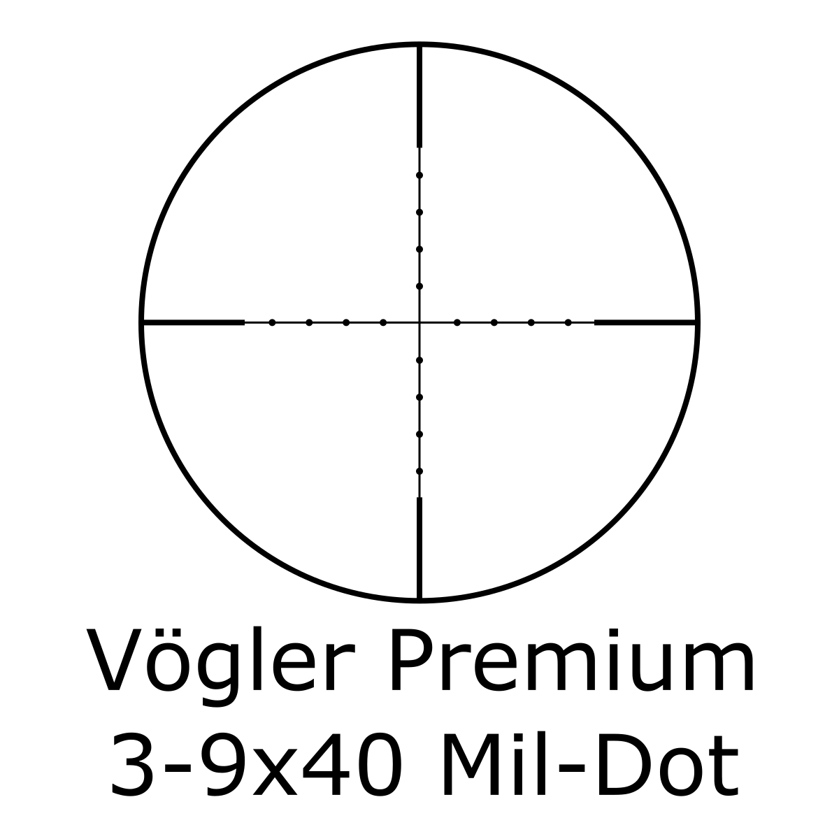 Celownik optyczny marki Vögler Optik z ulepszonej serii Premium z siatką MilDot. Antyrefleksyjne, wielowarstwowe powłoki szklanych soczewek i tubus wypełniony azotem gwarantują jasny, klarowny obraz. Zmienne powiększenie 3-9x, średnica obiektywu 40 mm, doskonały stosunek ceny do jakości! Odporny na energię odrzutu generowaną podczas strzału. Przeznaczony do mocnych wiatrówek pneumatycznych oraz karabinów małokalibrowych .22, .223. Po prostu bestseller!