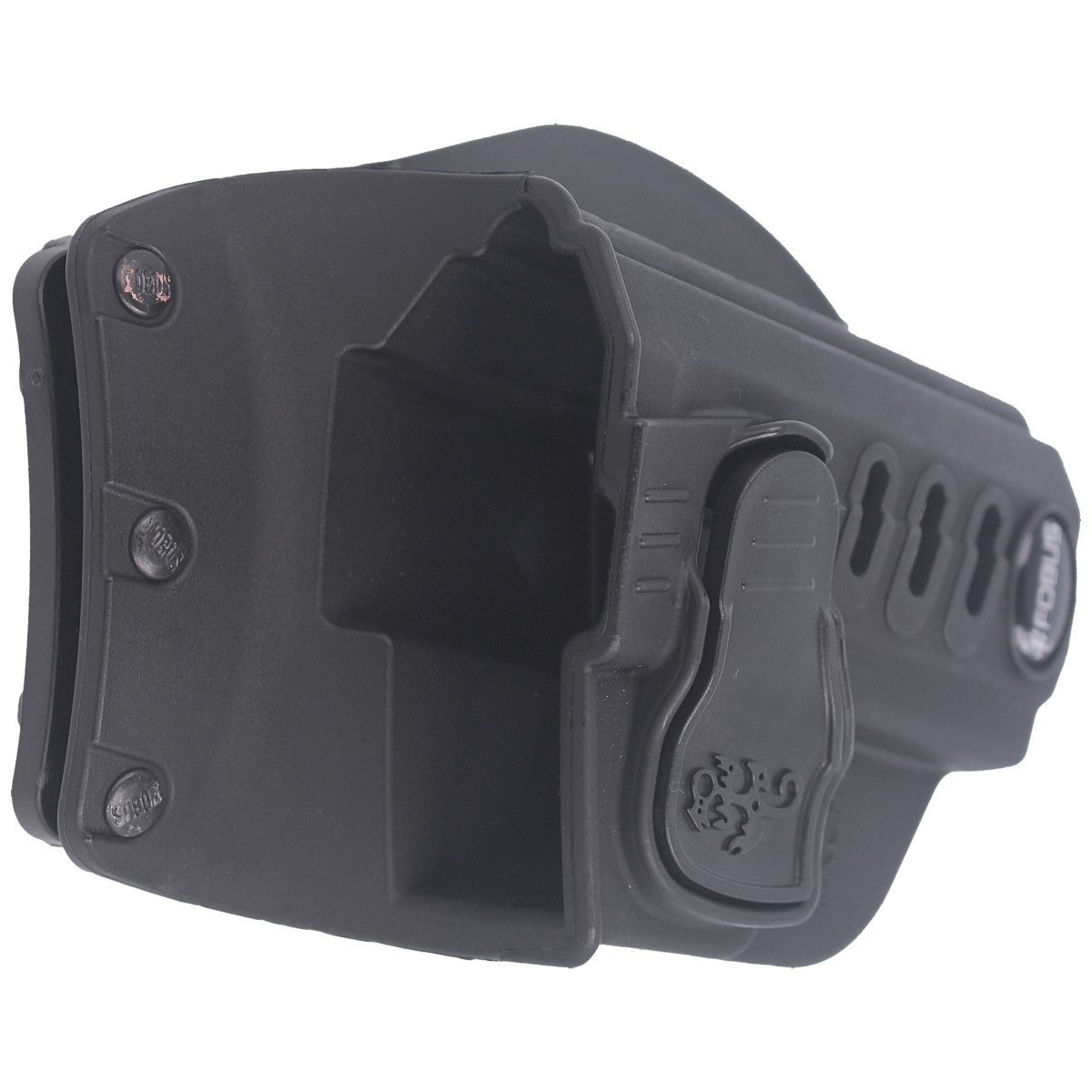 CH Series - profesjonalna seria kabur Fobus, skoncentrowana na bezpieczeństwie. Wyposażona w mechanizm zabezpieczający Trigger Guard Locking System (CH Rapid Release System), który gwarantuje bezpieczne przenoszenie broni w kaburze, zapobiegając jej przypadkowemu wypadnięciu podczas przemieszczania się. Dodatkowo, wyprofilowany przycisk mechanizmu blokującego wymusza prawidłowy uchwyt broni podczas jej dobywania. Po dobyciu broni palec wskazujący nadal znajduje się nad spustem w prawidłowej pozycji strzeleckiej. Zabezpieczenie utrudnia nieautoryzowane wyjęcie broni z kabury, co zwiększa bezpieczeństwo, szczególnie w tłumie. Idealna dla osób szukających niezawodnego rozwiązania do przenoszenia broni w trudnych warunkach.