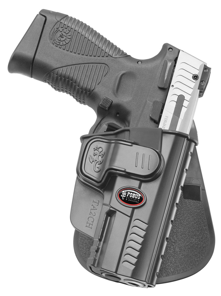 • TA2CH (Paddle) kabura Fobus prawa typ CH, Profesjonalna linia CH stawia na bezpieczeństwo. Mechanizm Trigger Guard Locking System rozwiązuje problem bezpiecznego przenoszenia broni. Taurus: PT 24/7 Gen. 2 w kal. 9 mm i .40. Nie pasuje do .45