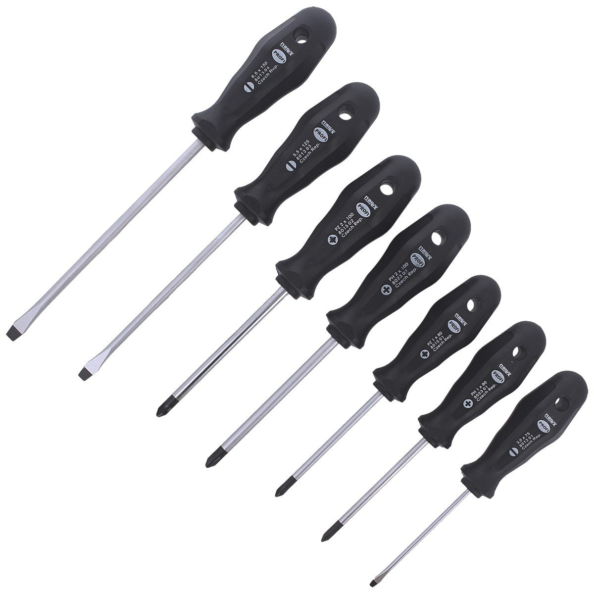 Kompletny zestaw – zawiera 7 wkrętaków dostosowanych do różnych typów śrub: