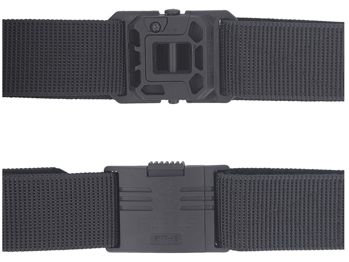 T-Belt XS-S profesjonalny pas taktyczny marki Fobus z dwoma wymiennymi klamrami w komplecie. AR-B klamra w stylu zawiasu do demontażu karabinu AR-15 oraz klamra PT-B w stylu szyny Picatinny. Pas wykonano z nie zniekształcającego się pod ciężarem ultra-mocnego syntetycznego poliestru o szerokości 1.75" (45 mm). Regulowana długość w zakresie od 77 cm do 85 cm za pomocą rzepów. Doskonała platforma do przenoszenia wyposażenia używanego podczas służby: kabury na broń, ładownic oraz kieszeni.
