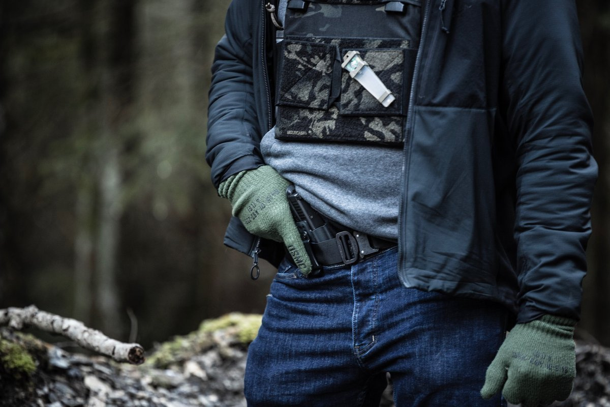 • nad tylnymi kieszeniami, 2 obszerne kieszenie na magazynki karabinowe od AR15 do AK47, apteczkę IFAK, duży smartfon nie wypada nawet gdy siedzisz, wszystko inne co ważne na co dzień nosisz ze sobą