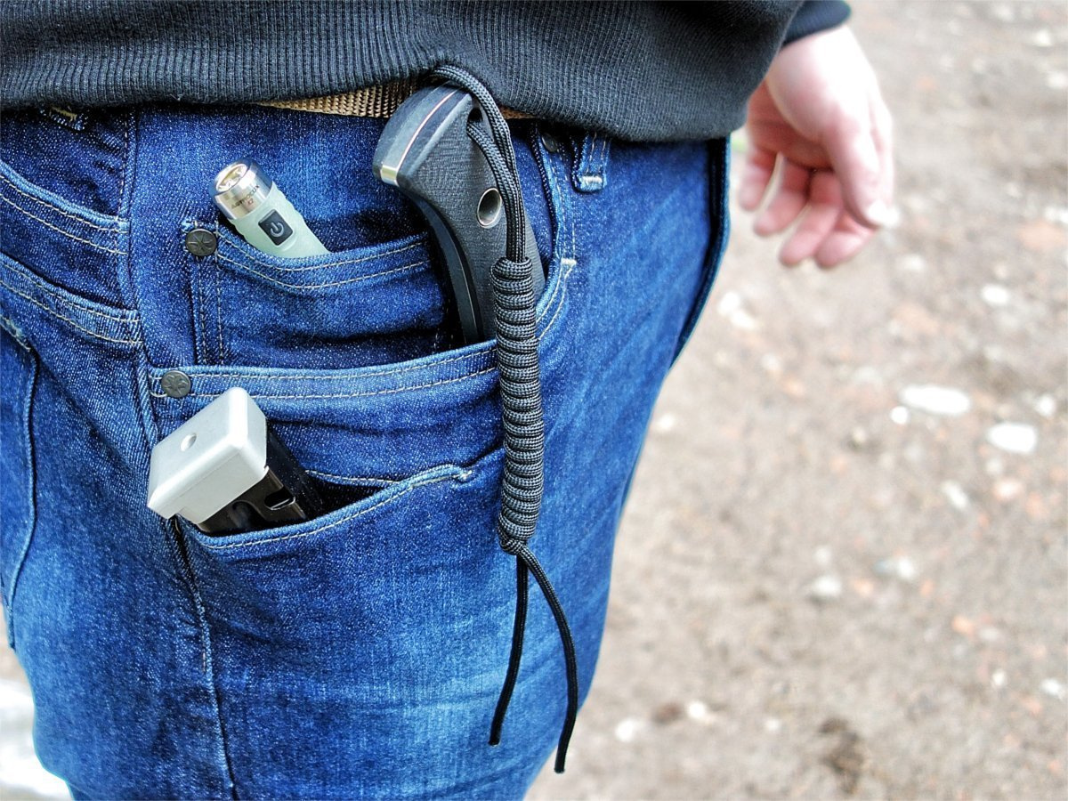 • wewnątrz spodni po lewej stronie, kieszeń na karty kredytowe, dokumenty ID lub na banknoty