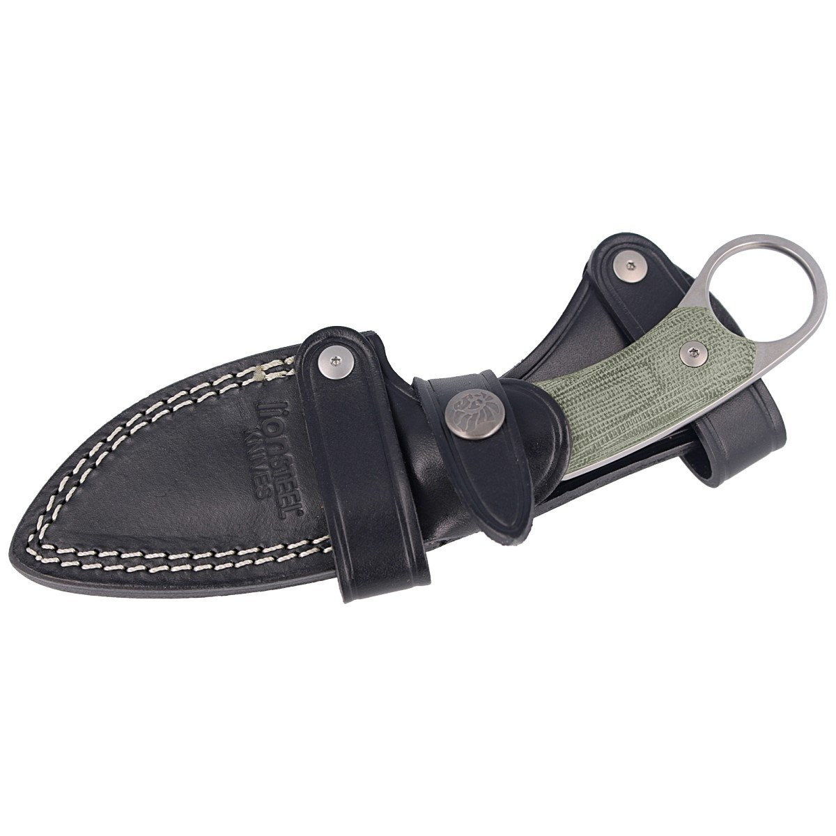 - H2 Canvas Micarta Green to użytkowy kerambit wykonany z najlepszych materiałów przez firmę LionSteel. Nieduże, stałe ostrze doskonałe do codziennego noszenia dzięki wielu opcjom mocowania.