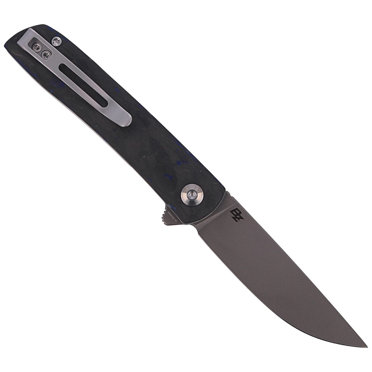 Bo Blue Carbon Fiber Blue, Gray Stonewashed zaprojektowany przez specjalizującego się w ręcznie produkowanych nożach custom amerykańskiego knifmakera Brada Zinker’a, członka The Knifemakers Guild. Folder Bo to idealny kompaktowy E.D.C. Charakteryzuje się płynną, dynamiczną akcją mechanizmu wysuwającego klingę, ostrzem użytkowym typu drop point, ergonomicznie wyprofilowaną rękojeścią o marmurkowym wzorze i głębokim klipsem do przenoszenia.
