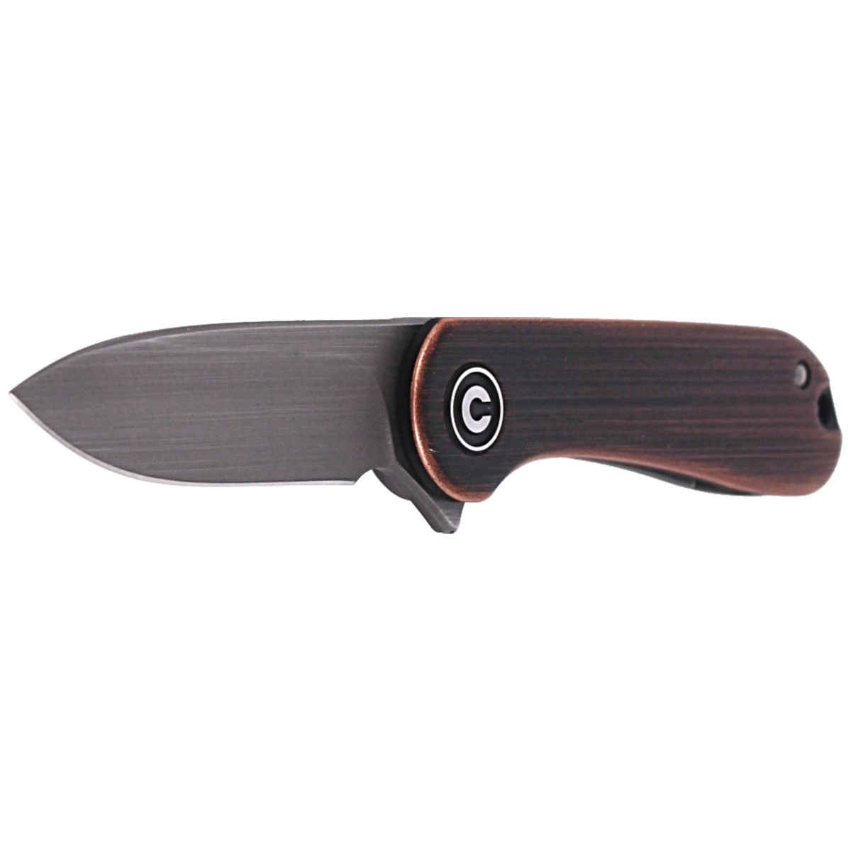 Mini Elementum Flipper Black Hand Rubbed Copper, Gray Hand Rubbed. Oryginalny Elementum jest kompaktowym, uniwersalnym nożem składanym w doskonałej cenie, zaprojektowanym z myślą o łatwym przenoszeniu. Będąc jednym z najlepszych folderów E.D.C., zyskał uznanie na targach nożowych Blade Show zdobywając nagrodę Best Buy of The Year 2021. Idąc za ciosem, marka Civivi wydała mniejszą o około 1 cal wersję tego bestsellerowego noża, z klingą ze stali Sandvik 14C28N, w formacie umożliwiającym przenoszenie go m.in. przy kluczach.