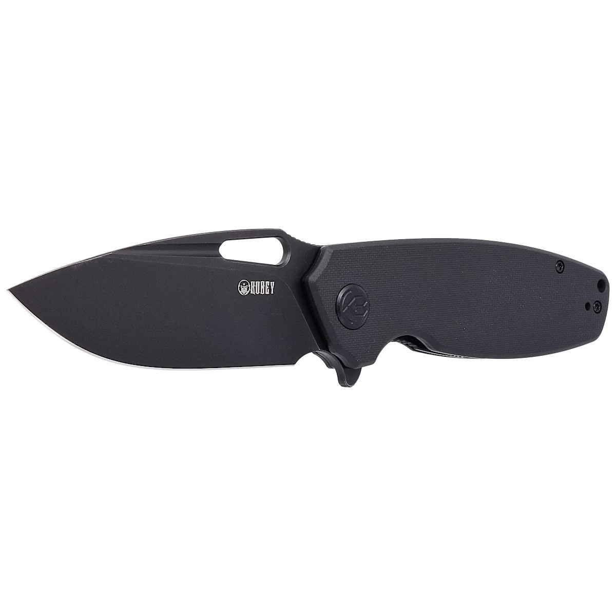 Rękojeść - okładziny z czarnego G10 (włókno szklane prasowane pod ciśnieniem z syntetyczną żywicą),teksturowane dla poprawienia pewności uchwytu, przykręcono do stalowej ramy noża. Otwarta konstrukcja tzw. open-backed mocowana do siebie stalowymi tulejami dystansowymi zmniejsza wagę oraz ułatwia czyszczenie. Prosta, solidna konstrukcja daje pewność wieloletniego użytkowania. Głębokie podcięcie na palec (fore finger groove) poprawia pewność uchwytu. Oś pivota zdobi stylizowane logo marki Kubey Knife. Dwupozycyjny (prawa/lewa) metalowy klips deep carry pozwala przenosić dyskretnie nóż w kieszeni w pozycji tip-up (czubkiem ostrza do góry). Nad klipsem lanyard hole, otwór do przewleczenia linki zabezpieczającej lub ozdobnej.