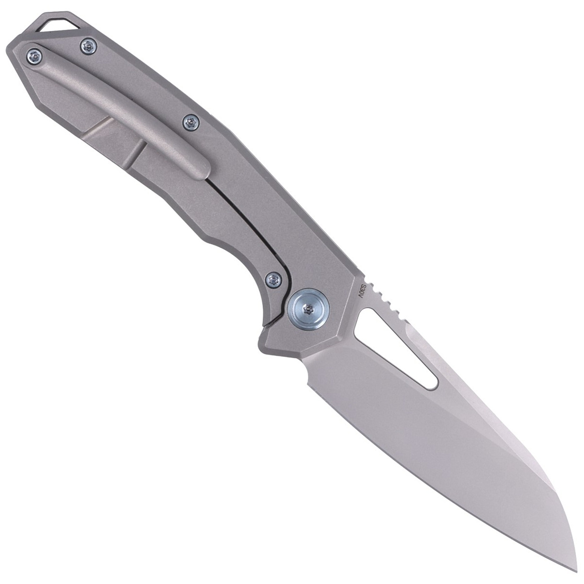 • Vagrant Gray Titanium, Sandblasted mocny folder EDC, projekt ukraińskiego knifemakera Maksima Tkaczuka. Ostrze sheepfoot ze stali premium CPM S30V, blokada frame lock, rękojeść z tytanu. Znakomity stosunek jakości do ceny! Bestseller!