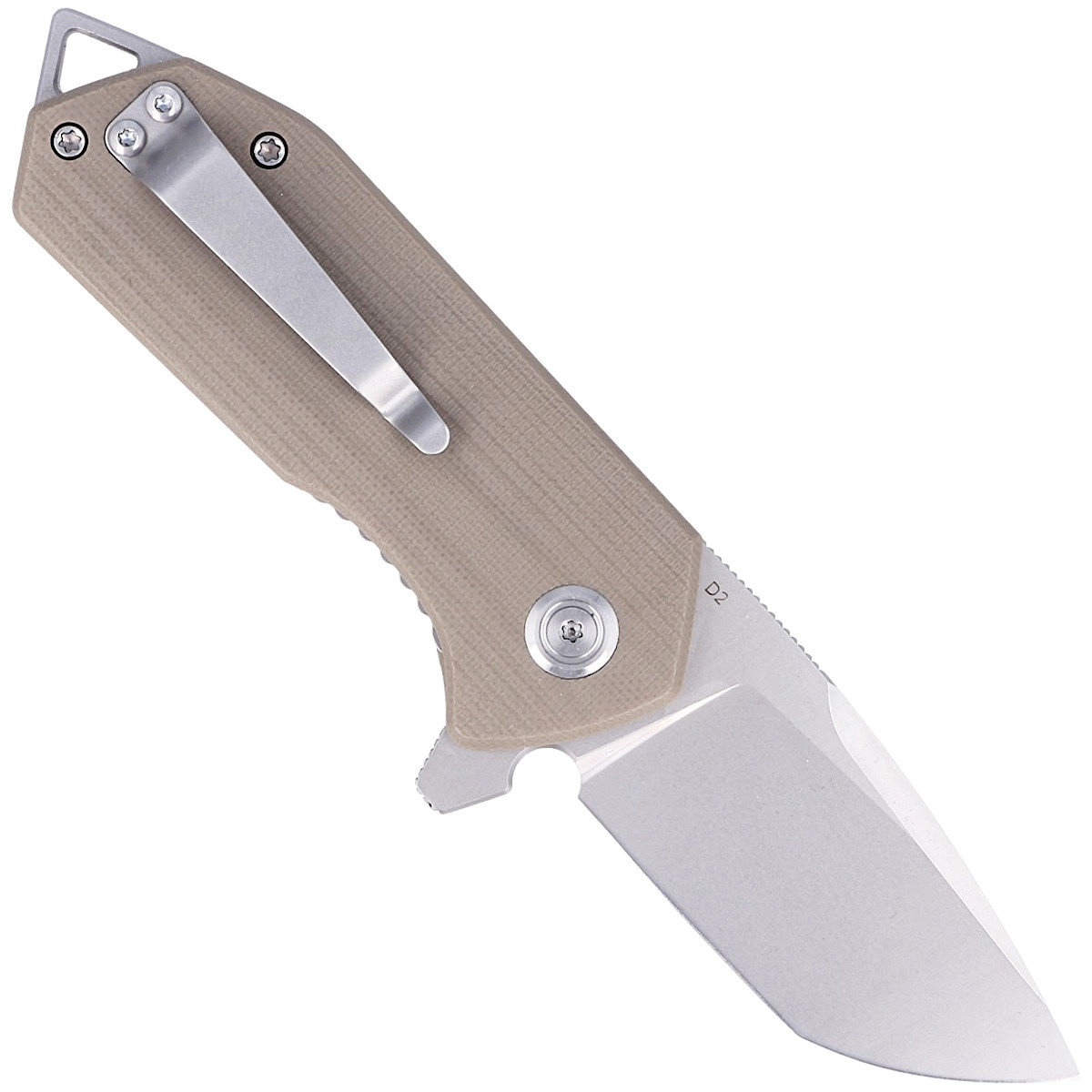 • Campe Khaki G10, Bead Blasted kompaktowy folder EDC z głownią ze stali D2, zapewnia dobrą odporność na zużycie i długotrwałe trzymanie ostrości. Flipper umożliwia szybkie otwieranie jedną ręką, a okładziny z laminatu G10 gwarantują stabilny, pewny chwyt.