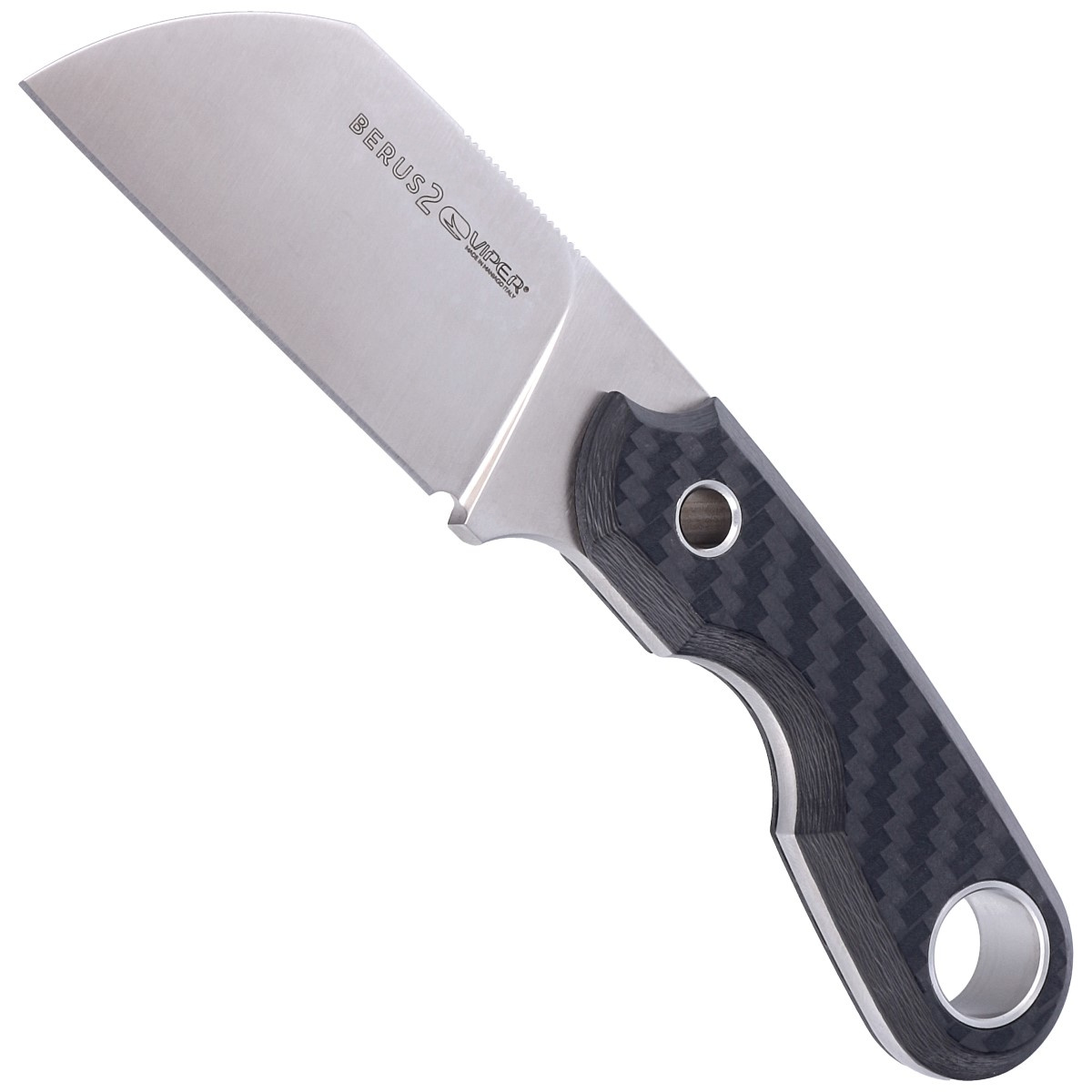 Berus 2 Carbon Fiber, design by Tommaso Rumici. Kuty z jednego kawałka stali, lekki 95 g kompaktowy wielofunkcyjny nóż włoskiej marki Viper. Charakteryzuje się wygodnym uchwytem oraz ostrym jak brzytwa, krótkim mocnym ostrzem z płaską krawędzią tnącą.