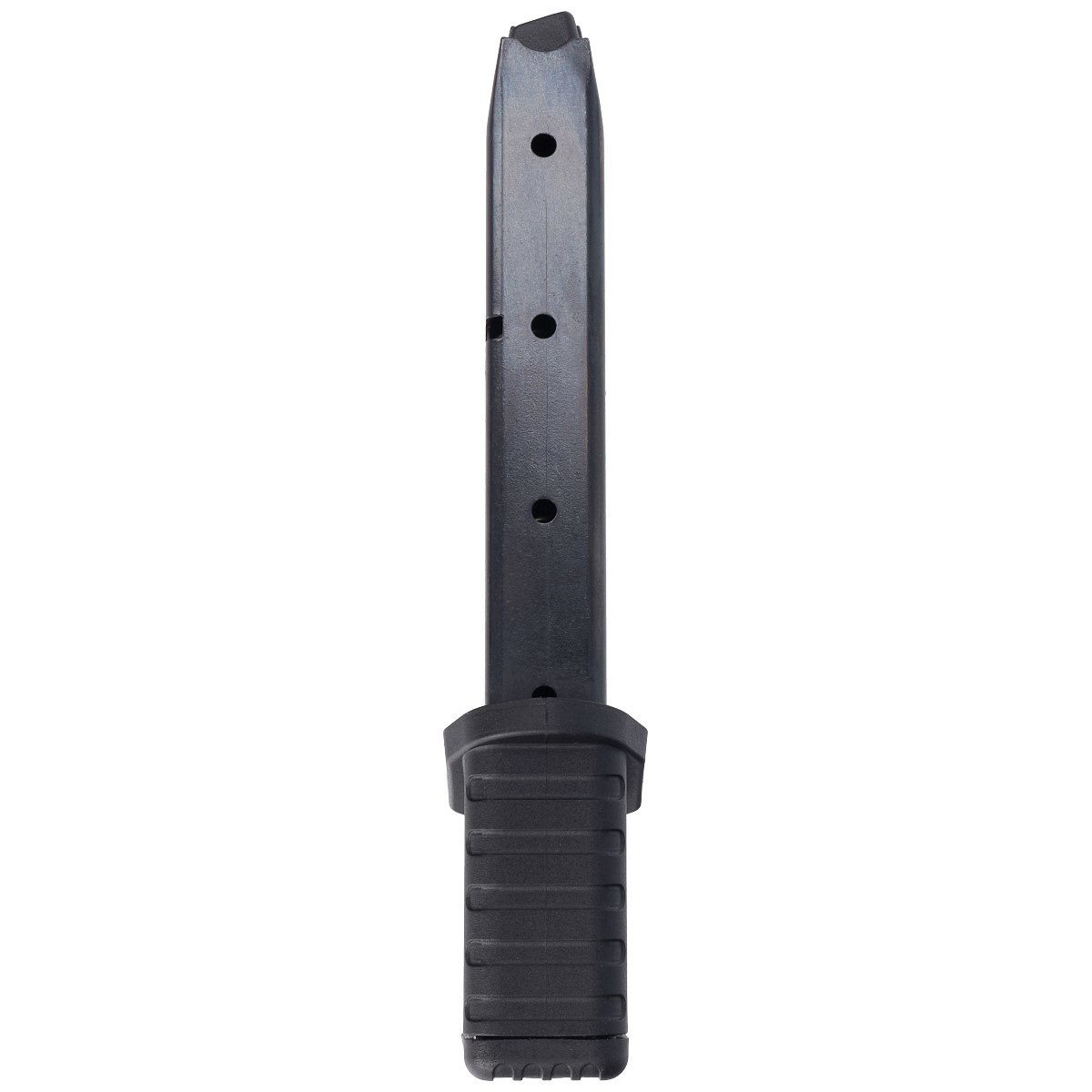 Opcjonalny, dwurzędowy przedłużany 25-cio nabojowy magazynek pudełkowy w kalibrze 9 mm P.A.K. Przeznaczony do pistoletów alarmowych Jackal Dual oraz Firat Magnum marki Ekol. Wysokość magazynka 138 mm, waga 114 g.