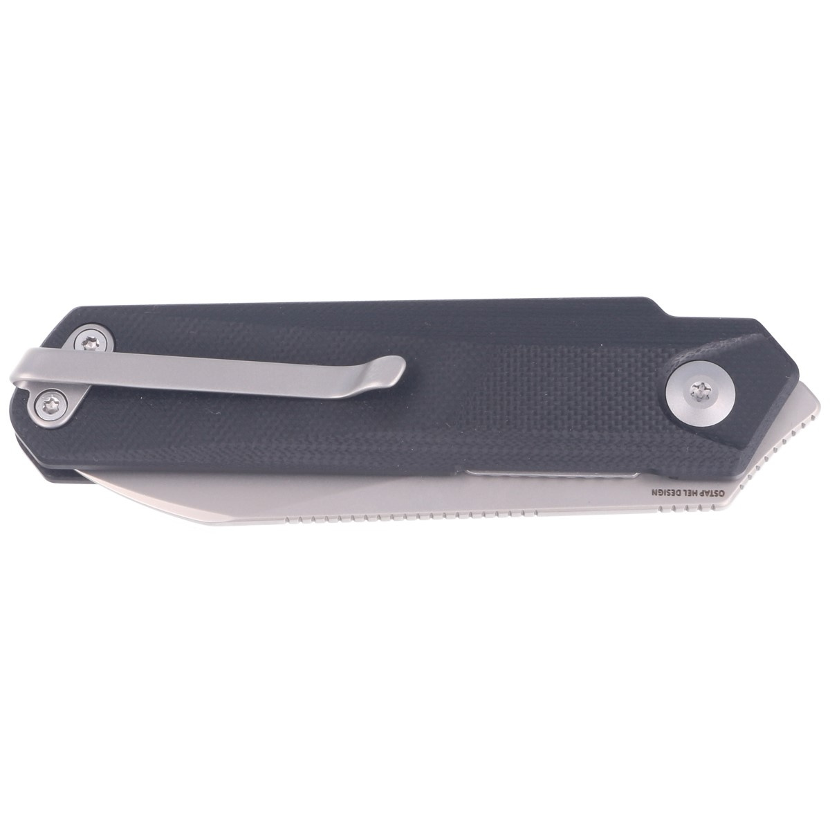 - Ki-V Plus G10 Black, Silver Bead Blasted powiększona wersja kompaktowego noża Ki-V polskiego projektanta i twórcy noży, Ostapa Hela. Została wydłużona o około 1 cal, z klingą Reverse Tanto ze stali Nitro-V i okładzinami rękojeści z G10.