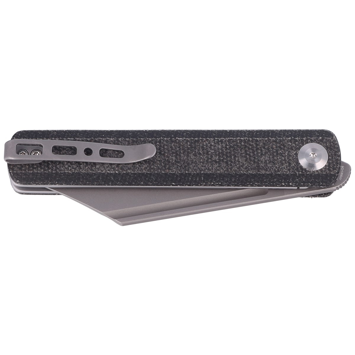 Bronte Black Micarta, Gray Stonewashed nóż EDC z tradycyjnym ostrzem tasaka. Popularny obecnie kształt klingi, z długą, prostą krawędzią tnącą oraz szpiczastą końcówką, która nadaje się do przekłuwania i do precyzyjnych prac. Bestseller!