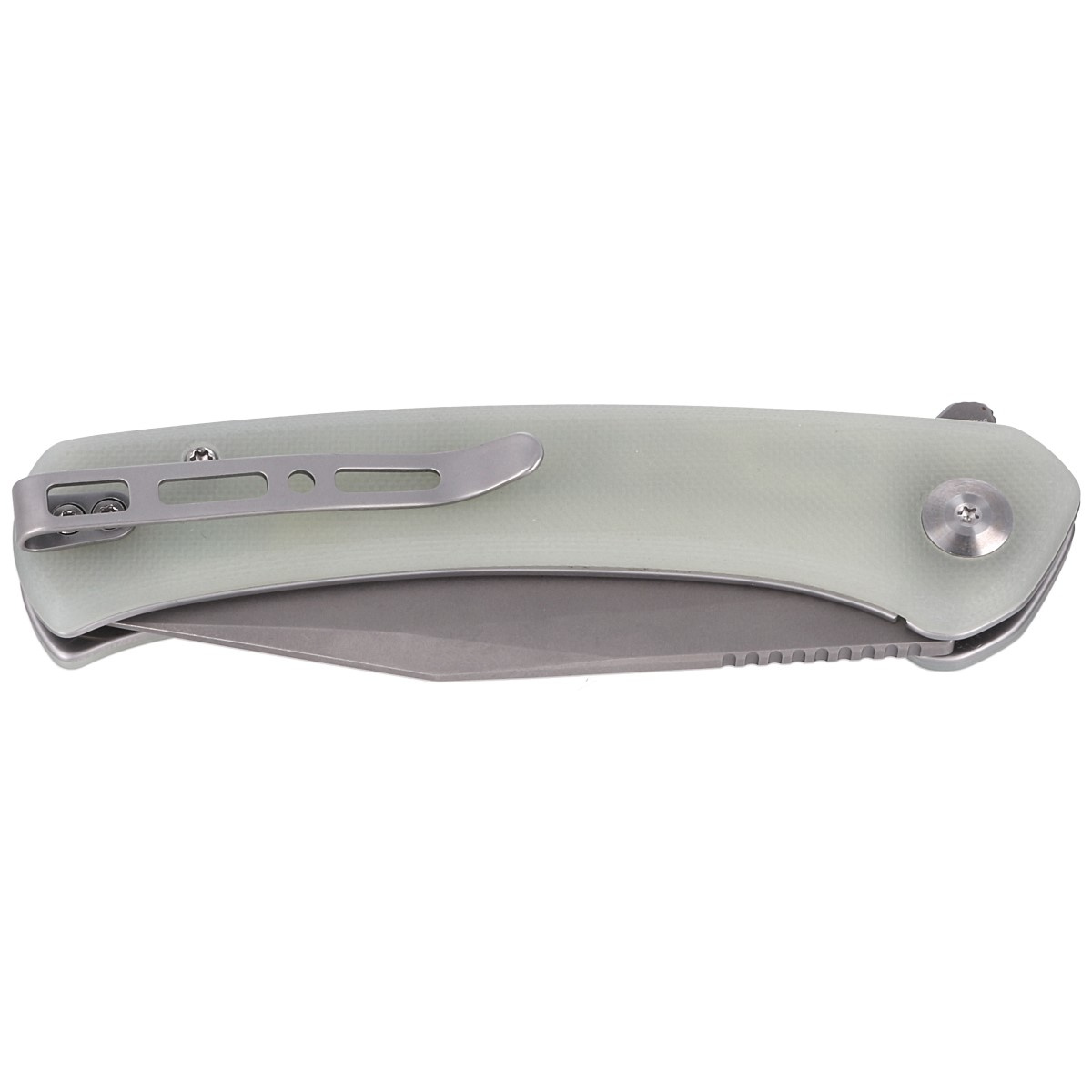 Głownia - typu Clip Point o wyraźnie zaznaczonym brzuchu wykończona metodą piaskowania Gray Stonewashed. Niewielka grubość klingi w połączeniu z wysokim, płaskim szlifem daje doskonałą geometrię krawędzi tnącej oraz ekstremalną wydajność cięcia. Ceramiczne łożyska kulkowe wspomagają płynną pracę mechanizmu otwierającego klingę, którą można otworzyć za pomocą szybkiej płetwy flippera (index-finger flipper). Po otwarciu płetwa tworzy mini-gardę zapobiegającą ześlizgnięciu się dłoni na ostrze. Na grzbiecie klingi upper jimping, karbowane oparcie pod kciuk. Całość blokowana jest solidną blokadą Liner Lock.